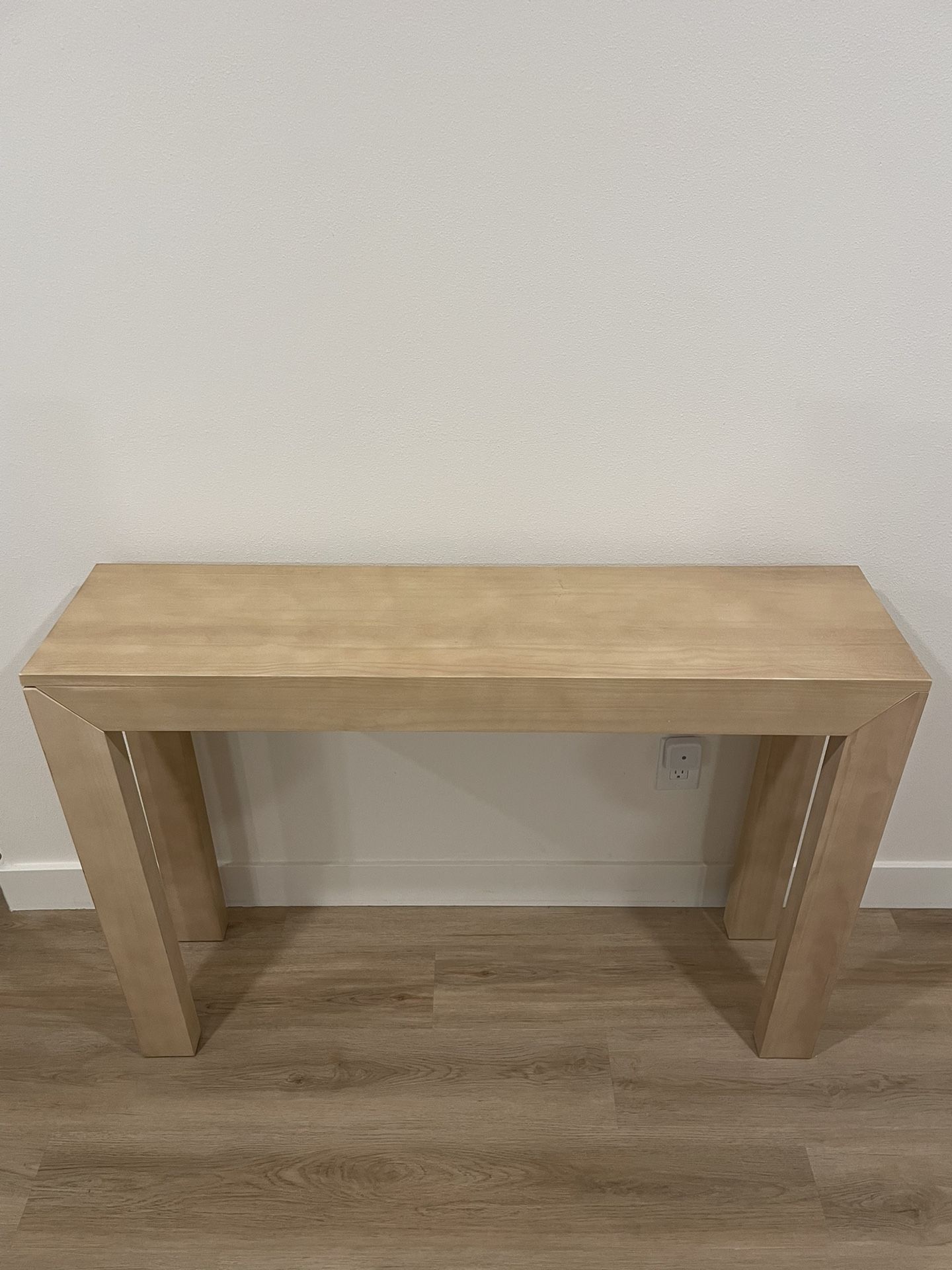 Entry table / console table Warm blonde almost pecan tone/color 32 1/4 height x 46 length x 11.5 width (in inches)