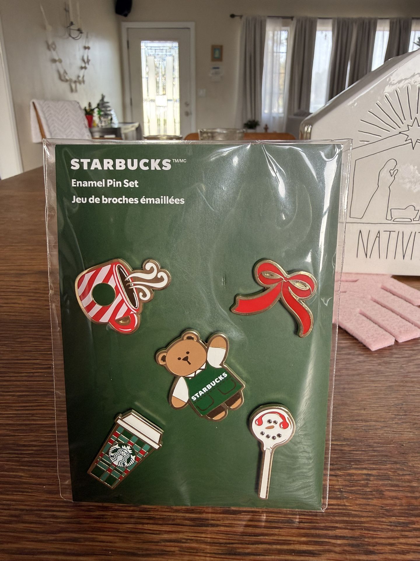 BNWT Just dropped.. Hard to Find, Holiday 2025 Limited Set of Five Pins!!! -Peppermint Coffee Mug -Red Bow -Bearista π» -Holiday Starbucks Cup -Snowman Cake Pop Perfect to Pin on your Tote, Sling or Give as a Gift Unopened, Sealed Ready for Pick up! π»