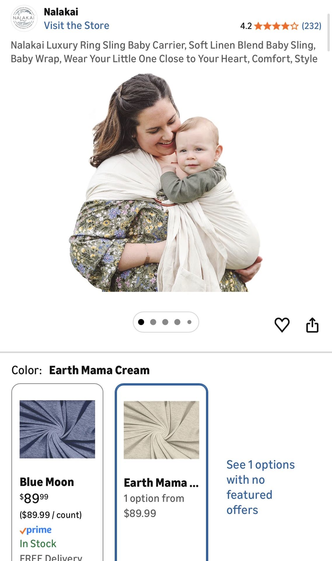 Baby carrier very lightly used in color “earth mama cream”. It’s a bit wrinkled because it’s been stored in the bag. $30