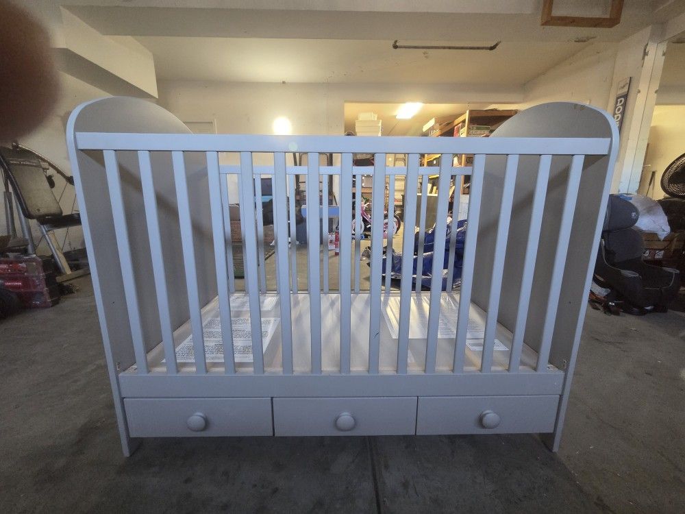 Baby crib in great condition, ready for a new home! Solid and well-kept. Mattress not included. Dimensions: 53.5” L × 29” W × 44” H. Great size for infants and toddlers. Messageme for details.