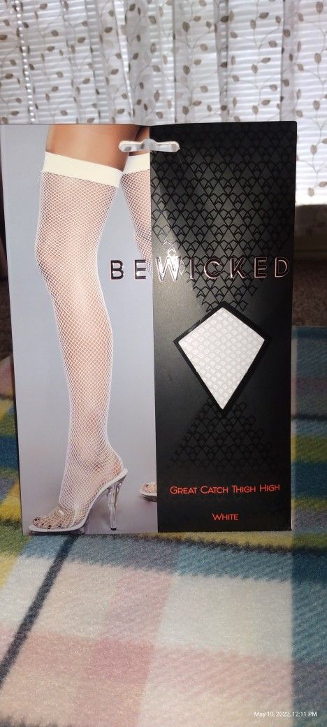 White fishnet thigh high with vaccine by BEWICKED ONE SIZE REGULAR ASKING $10 OR BEST OFFER