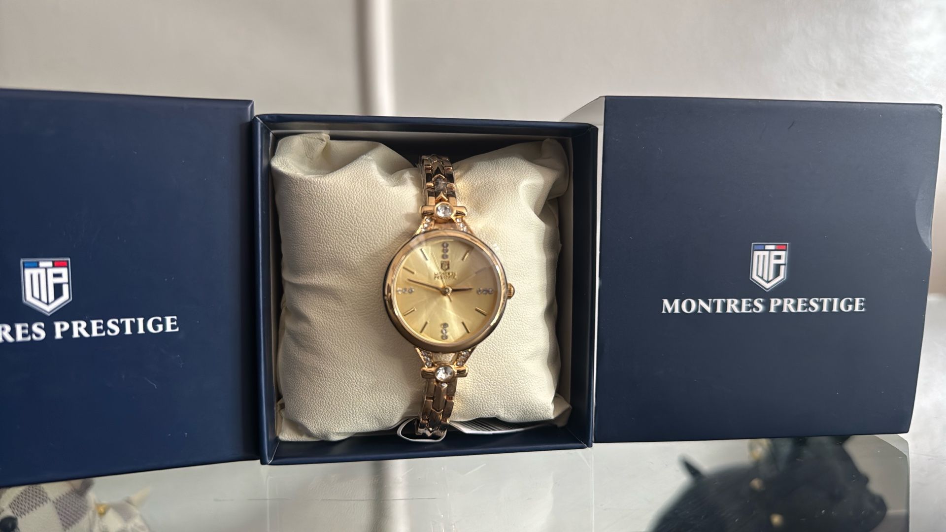 28mm gold women's watch with Austrian Pavé crystals. All gold. Super classy