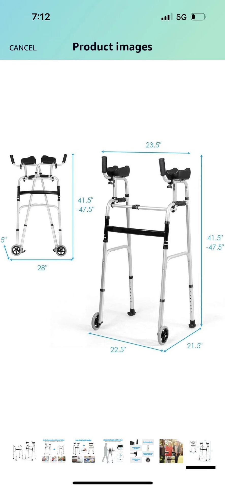 Folding Standard Walker,Rehabilitation Auxiliary Walking Aid, Front Wheeled Walker w/Adjustable Height & Removable Armrests, Platform Walkers for Seniors,Disabled, FDA Certification