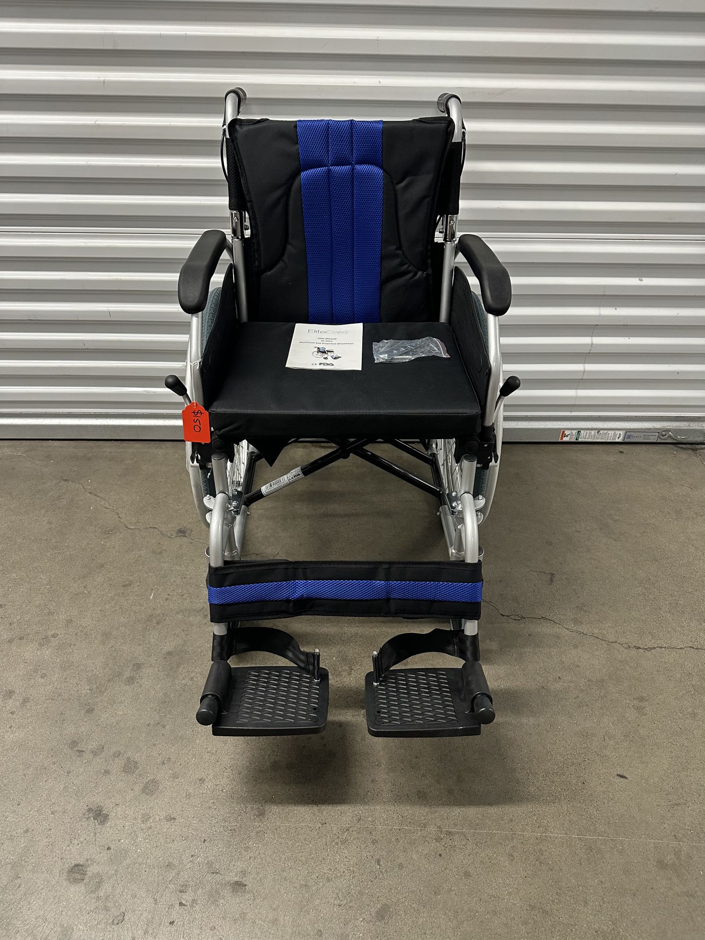Brand new, lightweight. Easy in and out of the car or around the house. Lots of features: 24-inch quick-release self propel wheels Folds compact for easy storage and transportation Armrests that lift up all the way or can be easily removed for transferring user to bed or chair Added lap belt for safety and security Height adjustable swing away leg rests Removable seat cushion and padded backrest Supports users up to 250lbs Calf and heel support straps Attendant slowing brakes Seat is not height adjustable at 22 inches from the ground. Priced to sell, this usually sells over $300 new with great reviews on Amazon (search ASIN B00C9WVW36) local retailer for product and service support if needed. Full measurements: Height - 93cm / 37" Width - 64cm / 25" Depth - 106cm / 42" Folded Height - 75cm / 29.5" Folded Width - 26cm / 10 " Folded Depth - 76cm / 30" Seat Height - 56cm / 22" Seat Width - 46cm / 18 " Seat Depth - 40cm / 16 Armrest Height - 18cm / 7" Total Weight - 14.5kg / 32lbs Carry Weight with wheels / legrests removed - 8.5kg / 18.5lbs Max user weight - 250 LBS