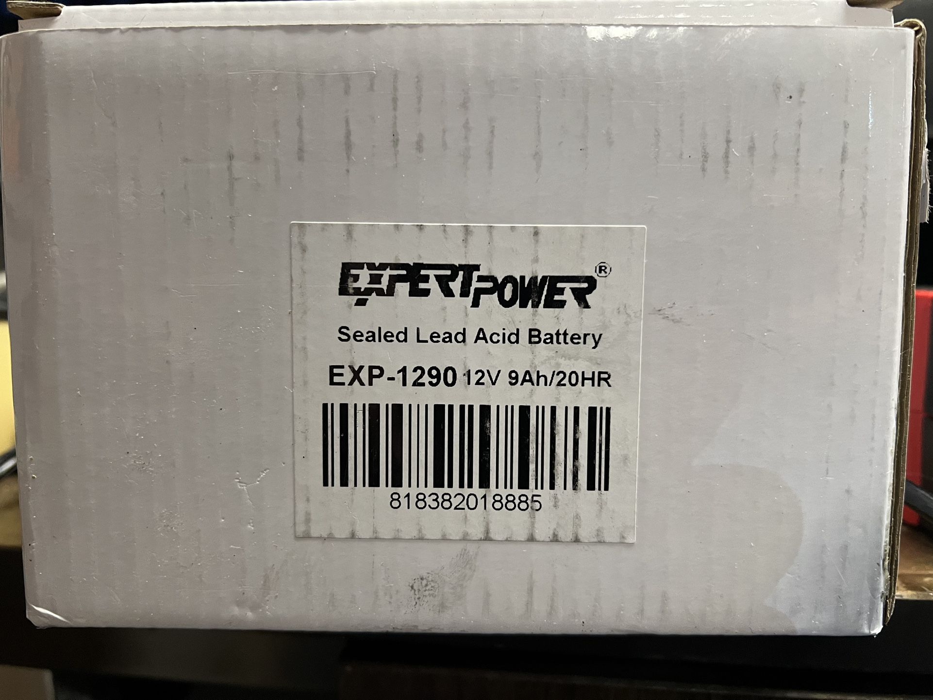 2 Pk - 12V, 9 Ah batteries. PN: EXP-1290, New, In opened box.