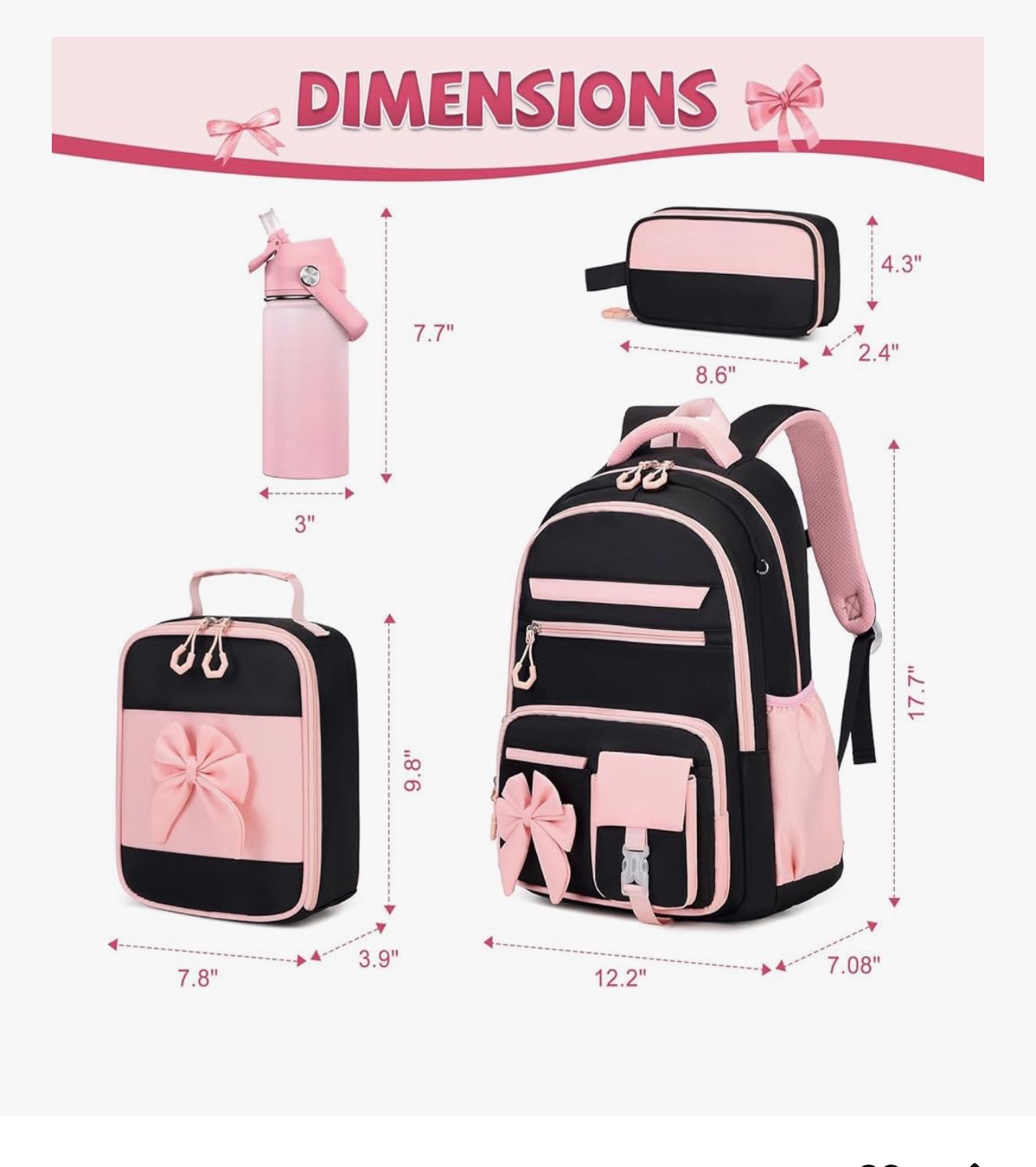 Girls Backpack - Includes 14oz Insulated Water Bottle, Girls School Backpack Set with Lunch Bag & Pencil Case Teens for School (Black-Pink)