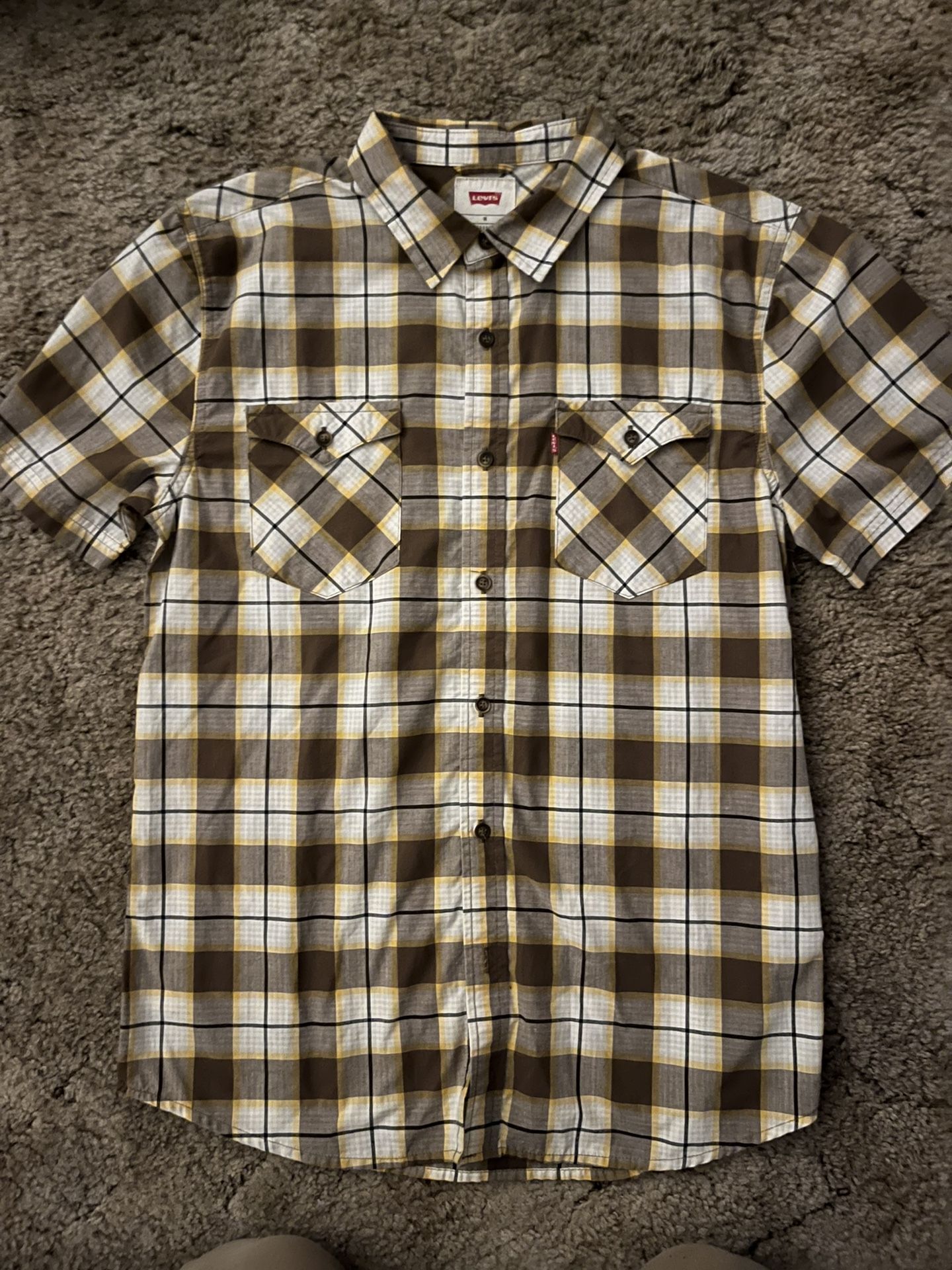 Levi’s short sleeve plaid button up Size medium 60% cotton 40% polyester