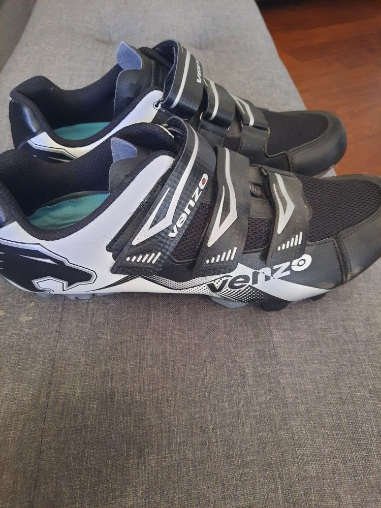 Venzo cycling shoes SPD cleats. US size 11 Worn twice Will consider trade for Look style shoes and cleats.