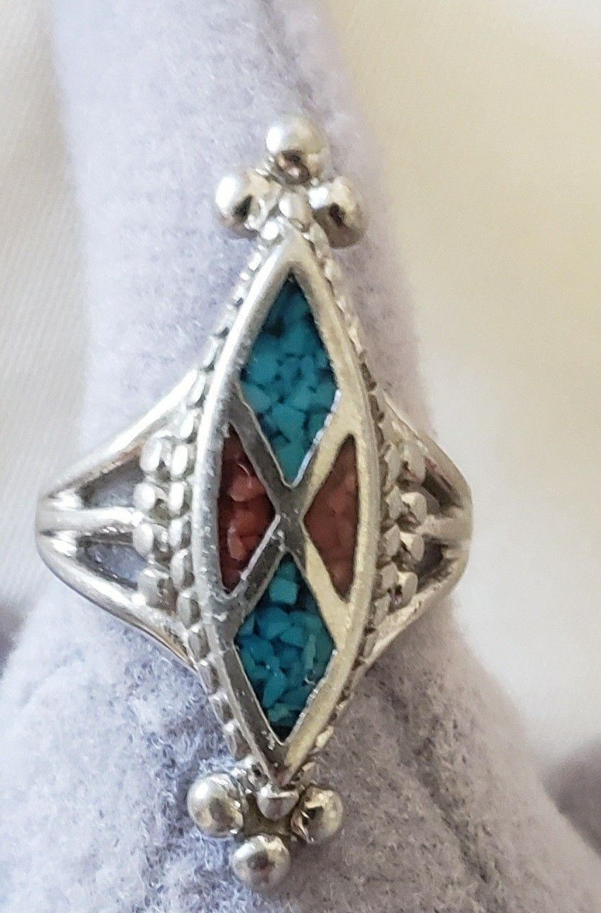 Turquoise Ring. Nice colors Silver. From New Mexico Women's Ring Size 5 Can also be pinky Ring