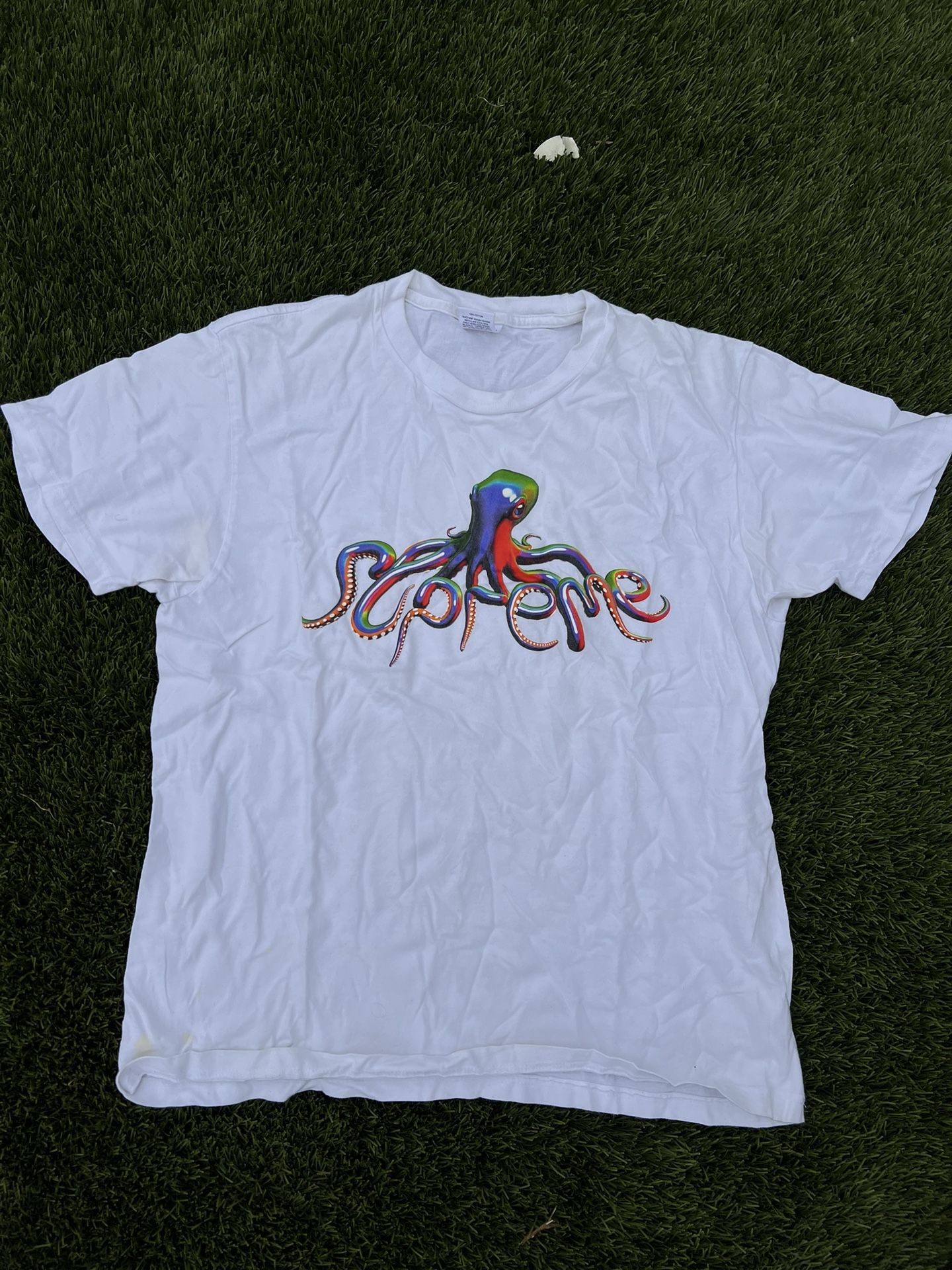 Supreme Octopus Tentacle Tee White Medium Used 6/10 Stain bottom left
