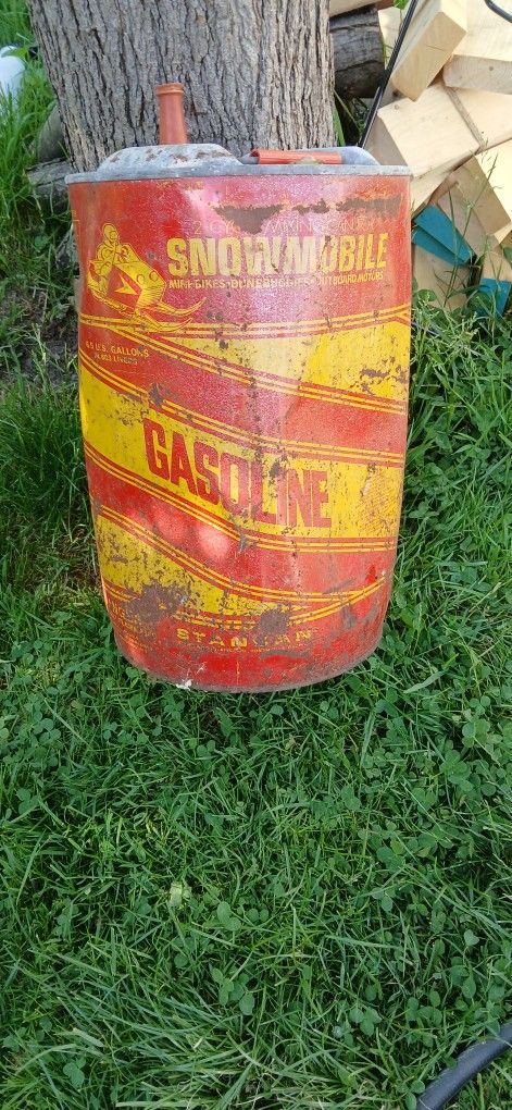6.5 gallon 2 cycle snowmobile can. Bit rough but shows its been used.