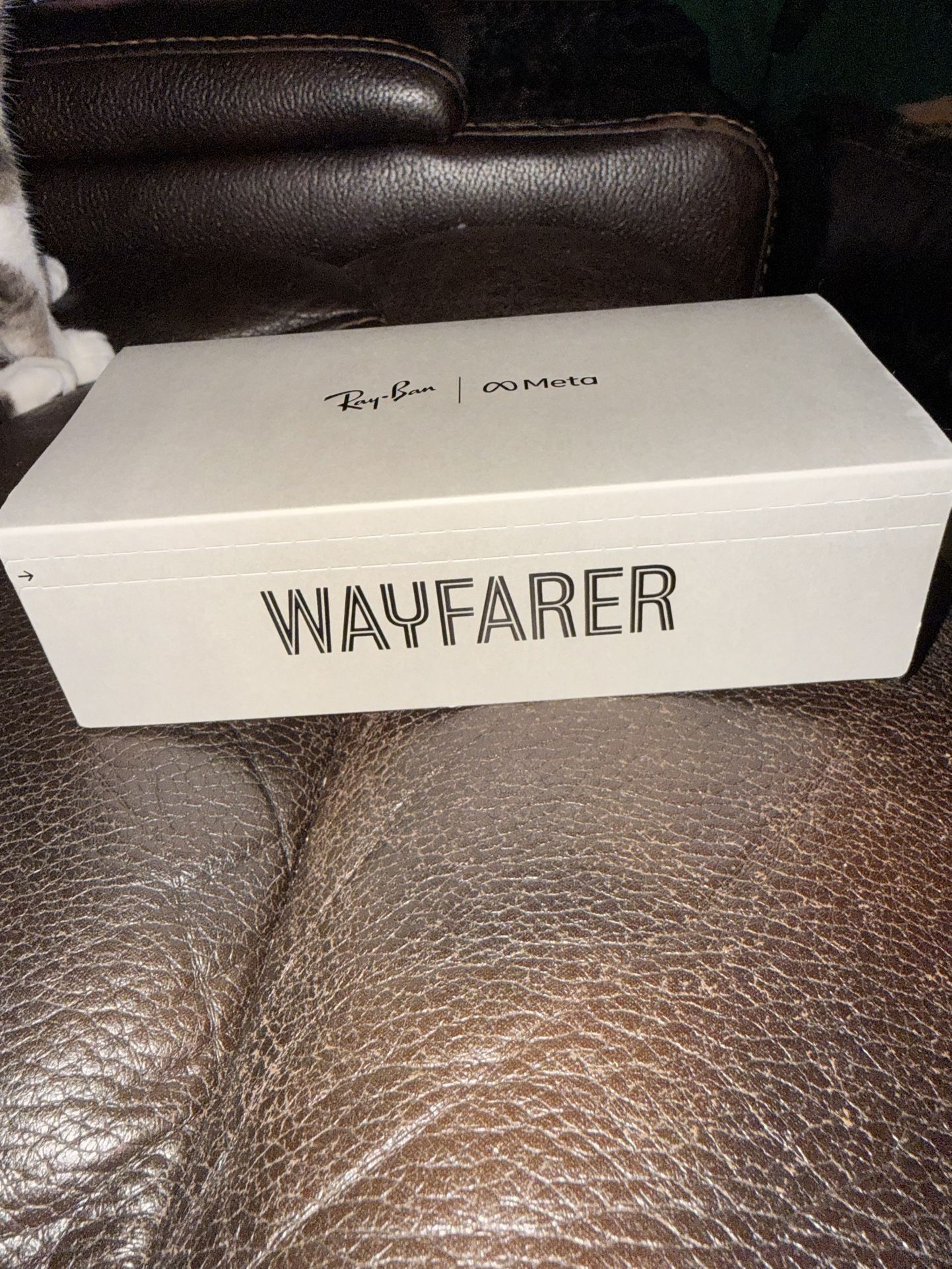 Brand new, unopened Ray-Ban Meta Wayfarer smart sunglasses (model RW4006). Shiny black frame with classic G-15 green lenses. Includes original packaging, charging case, and all accessories. Classic Wayfarer shape looks great on both men and women — fits most face shapes comfortably with a medium 50mm frame size. Never used, still sealed in box. Retail $299 — selling for $299 (or best off)