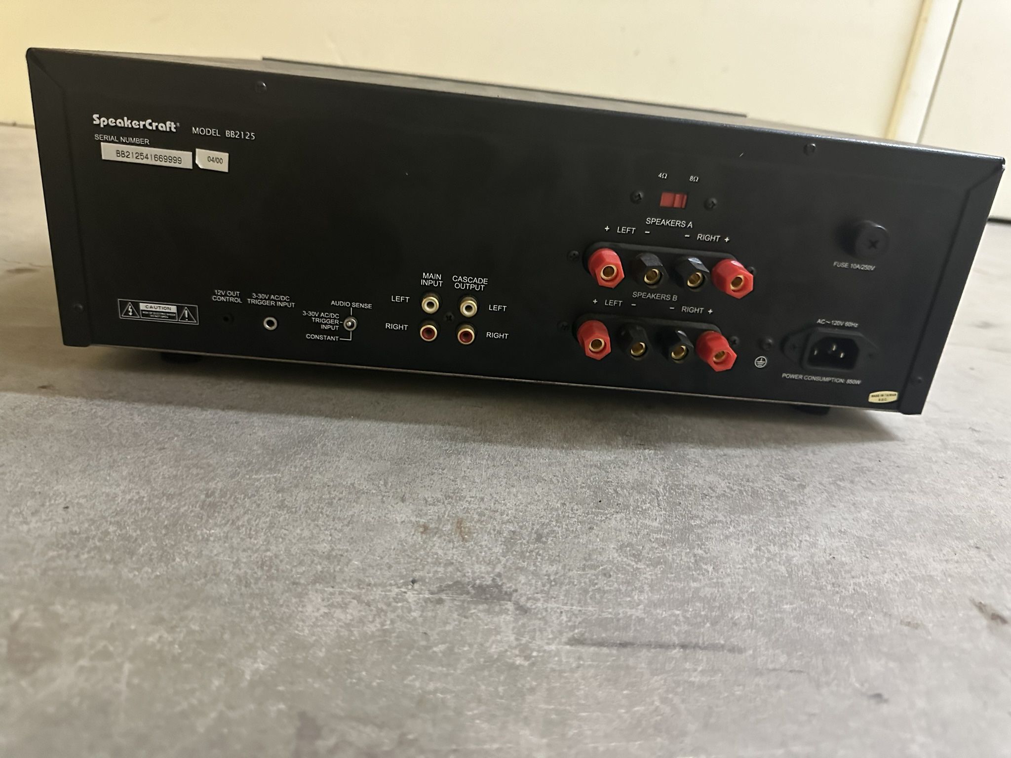 Professionally tested SpeakerCraft BB2125 Highlights 125W Per Channel RMS 5-Way Binding Posts 12V Control Output Allows Daisy Chaining Stability Into 2 Ohm Load 3U High Multiple Turn-On Modes Pass Through Outputs