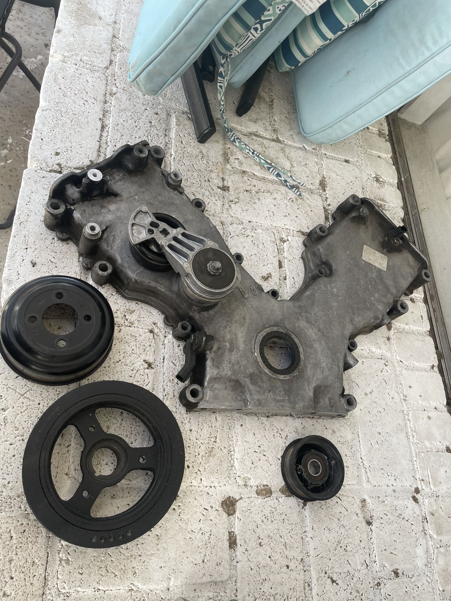 Timing cover for 4.6 2v in good shape. Have all pulleys as well