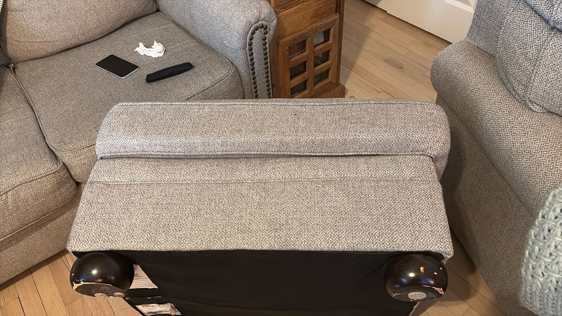 Two toned beige and darker beige a lil brown Chair ottaman. sofa with upgraded gel mattress in very good condition; recently clean All 3 pieces 175 or best offer. 224/(contact info removed) (contact info removed)6