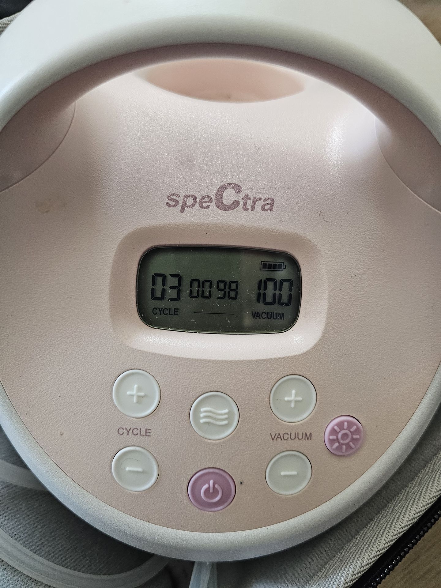 Spectra breast pump, only 98 hours pumped time. Extra tubing, back flow protectors, duckbill valves, flanges and cups.