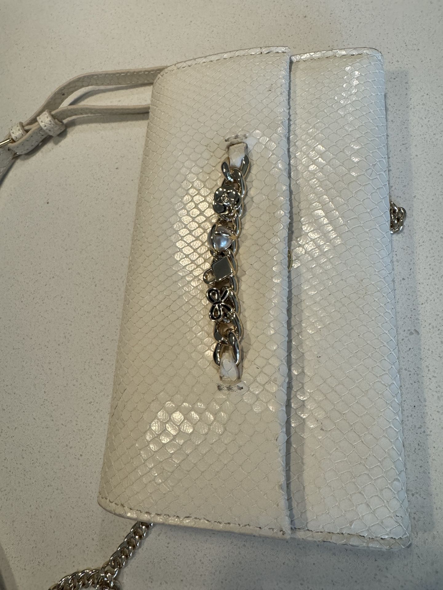 Ted Baker Cream Snake-Embossed Chain Crossbody Bag