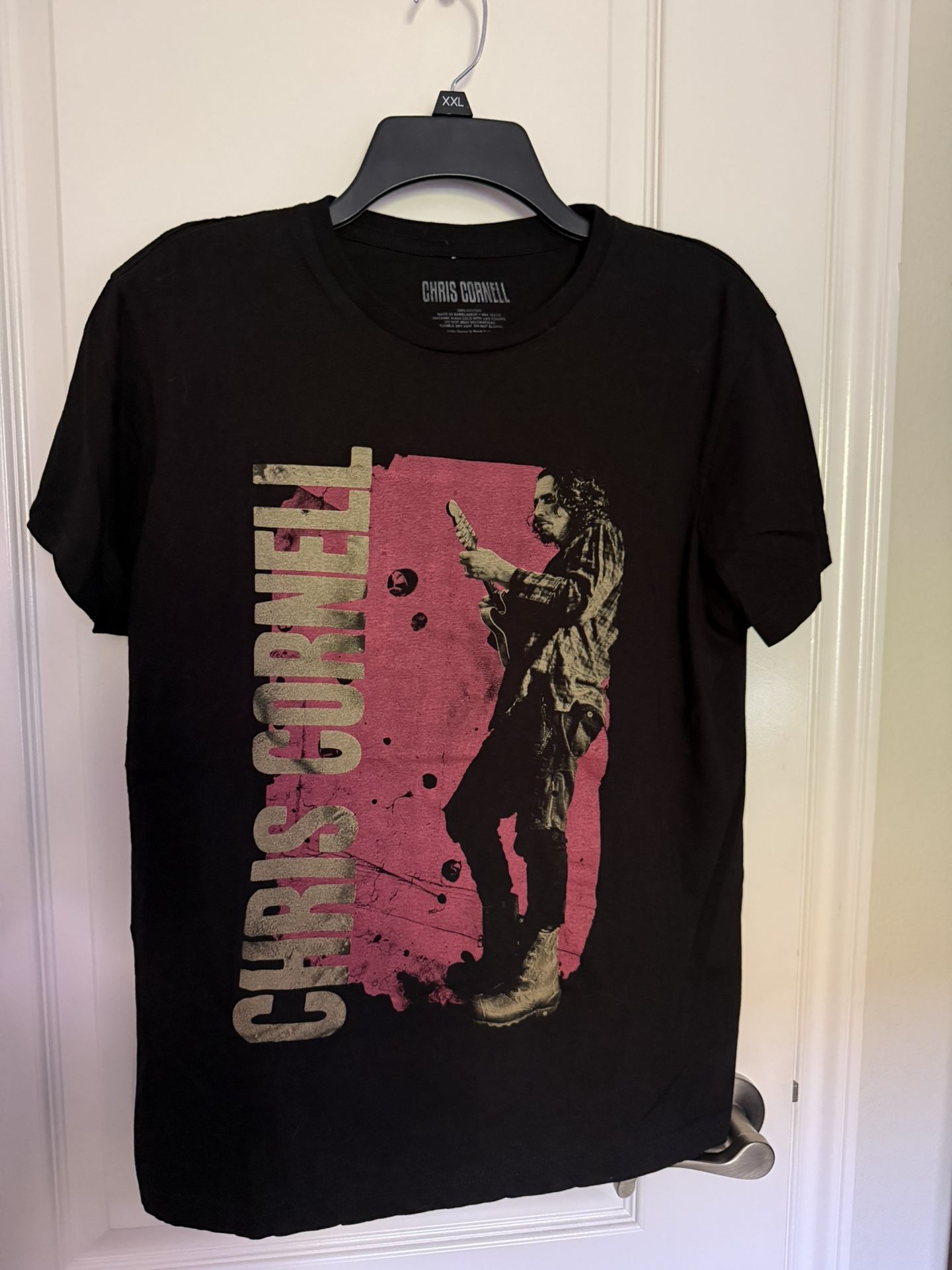 Cool black Chris Cornell t-shirt. Has a graphic of him playing guitar. Size M. Only worn once so it’s in excellent condition.