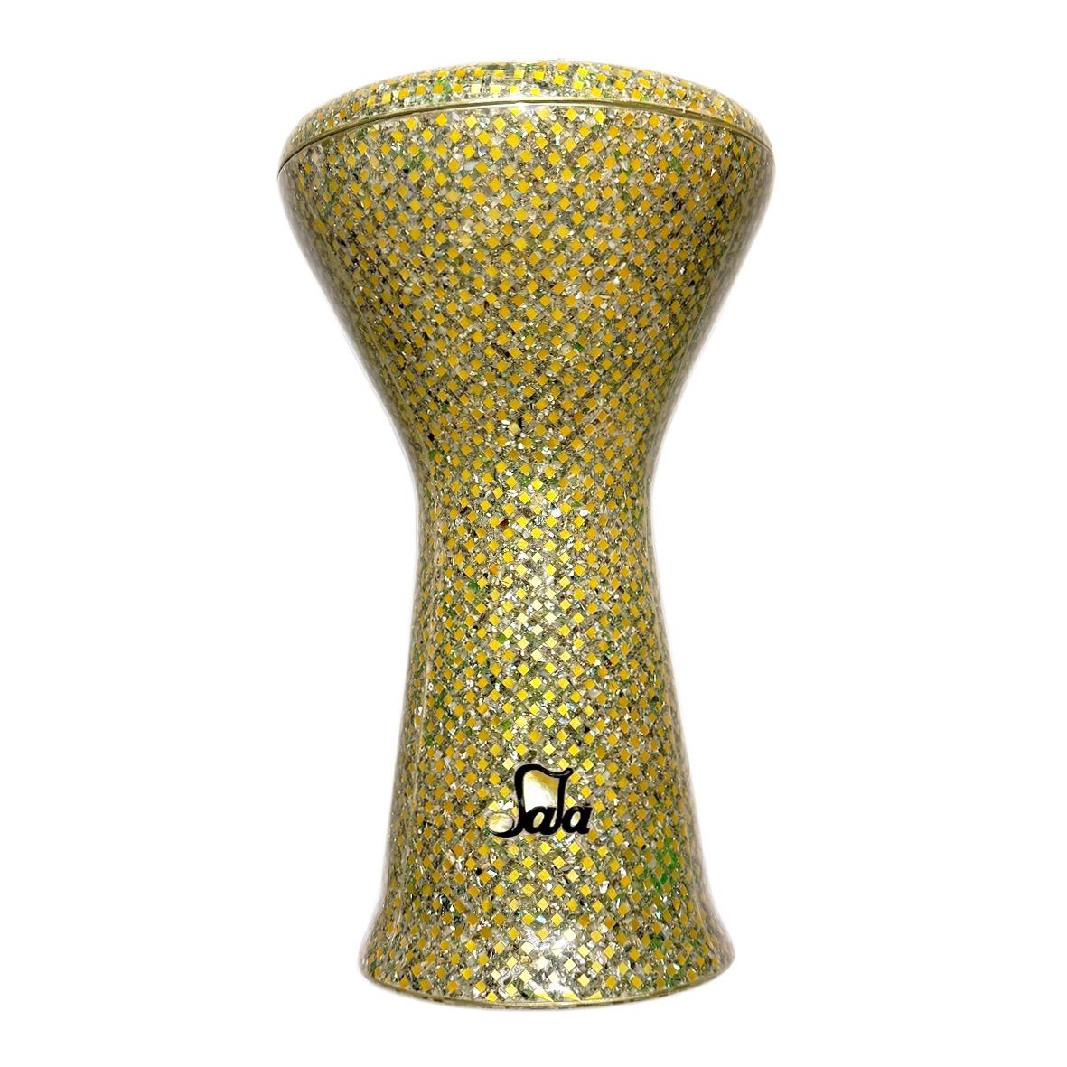 Sombaty Darbuka GLD-4 – Golden Jewelry by Sala Experience the pinnacle of musical artistry with the Sombaty Darbuka GLD-4 – Golden Jewelry, a premium darbuka designed for professionals and enthusiasts alike. This high-end, fully customized darbuka features a brand-new body structure, meticulously engineered to produce the finest sound quality. ✨ Innovative Design & Superior Sound Quality A newly developed body structure enhances resonance and maximizes sound clarity. The top part of the darbuka has a more curved design, allowing for better hand positioning and improved playability. The glossy interior finish is just as smooth as the exterior, ensuring optimal sound projection. ✨ Exquisite Craftsmanship with Natural Materials Adorned with genuine wood and mother-of-pearl inlays, offering a luxurious and elegant look. This exclusive collection is inspired by the names of Egyptian kings and queens, embodying both history and artistry. ✨ Technical Specifications Height: 47 cm (18.5 in) Skin Diameter: 23 cm (9 in) Weight: 6.3 kg (13.86 lbs) 🎁 What’s Included? ✔️ Extra drum head ✔️ Padded carrying bag ✔️ Allen key for tuning ✔️ Leather protection cover