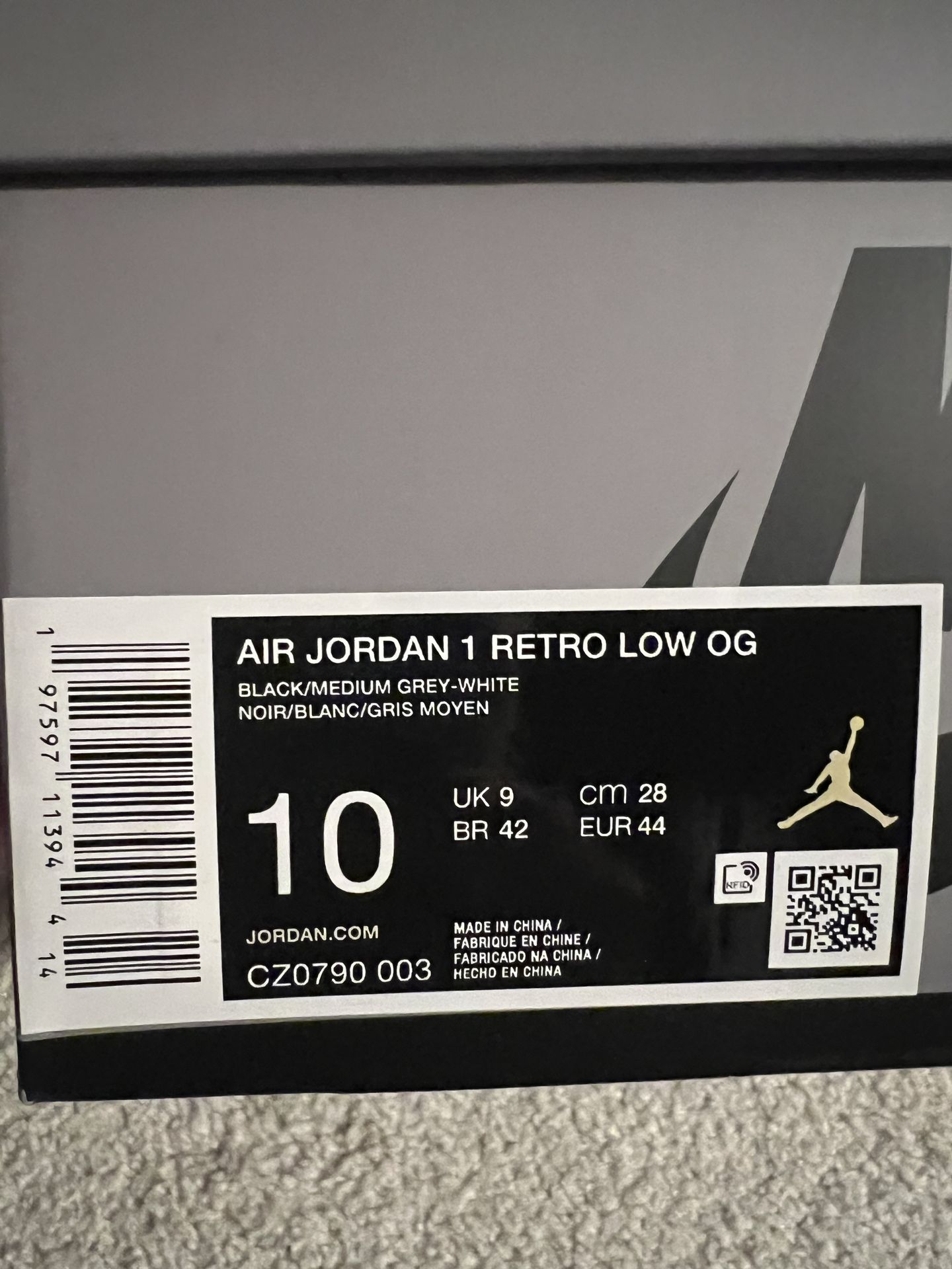 AIR JORDAN 1 RETRO LOW OG BLACK/MEDIUM GREY-WHITE NOIR/BLANC/GRIS MOYEN 10