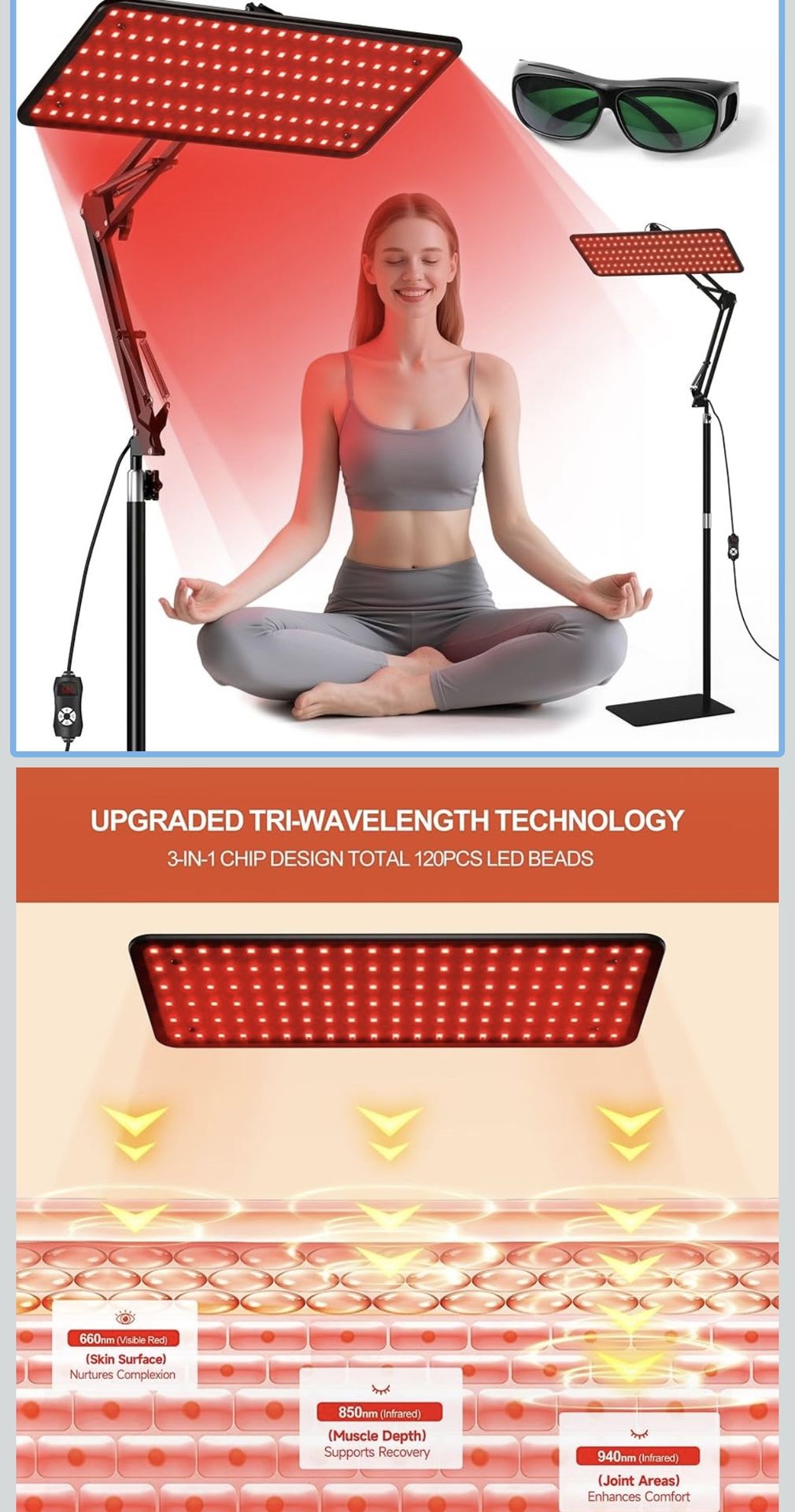Red Light Therapy for Body Face - Tri-Wavelength (660nm, 850nm, 940nm) LED Infrared Light Therapy Lamp Panel with Adjustable Stand, Protective Glasses for Home Use, Gift for Women Girl, M Completely new (see pictures) 📦accept offers 📍pickup only