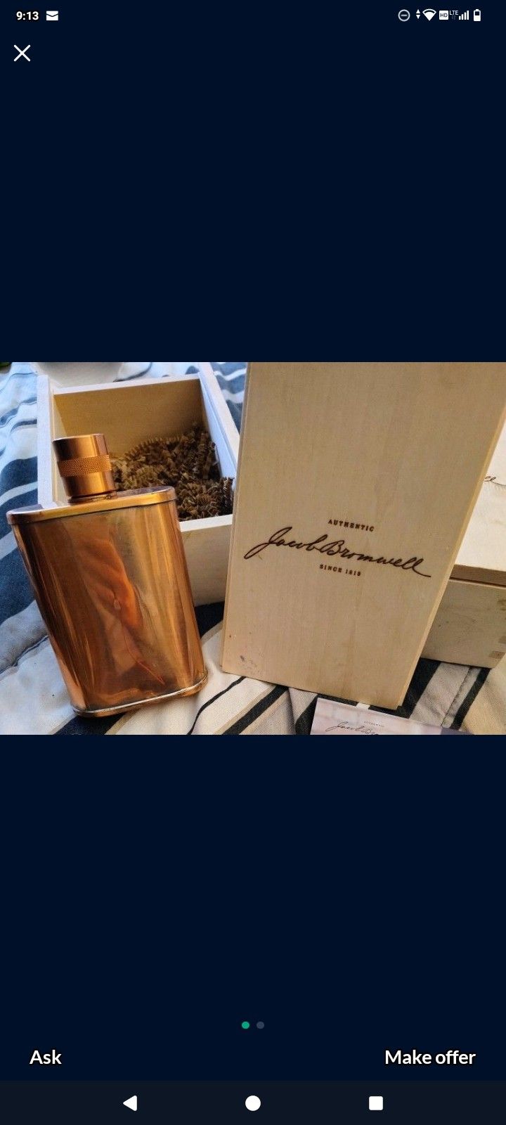 Masterfully hand-built for over 200 years, Vermonter® remains the world’s most iconic flask. Praised by Men's Health, Men's Journal, and Us Weekly for its exceptional craftsmanship, it’s our #1 best seller and the crown jewel of the Jacob Bromwell® model range. More than a flask, Vermonter® is a lifestyle—offering prestige, status, and a generous 9-oz. capacity perfect for everyday carry. Favored by Hollywood stars, business leaders, professional athletes, and several U.S. Presidents, its 22-gauge solid copper body is finished with our ultra-reflective SuperPolish™, while the interior is lined with molten, lead-free tin using a lost process that’s trade-secret to our company. $300 on there web site