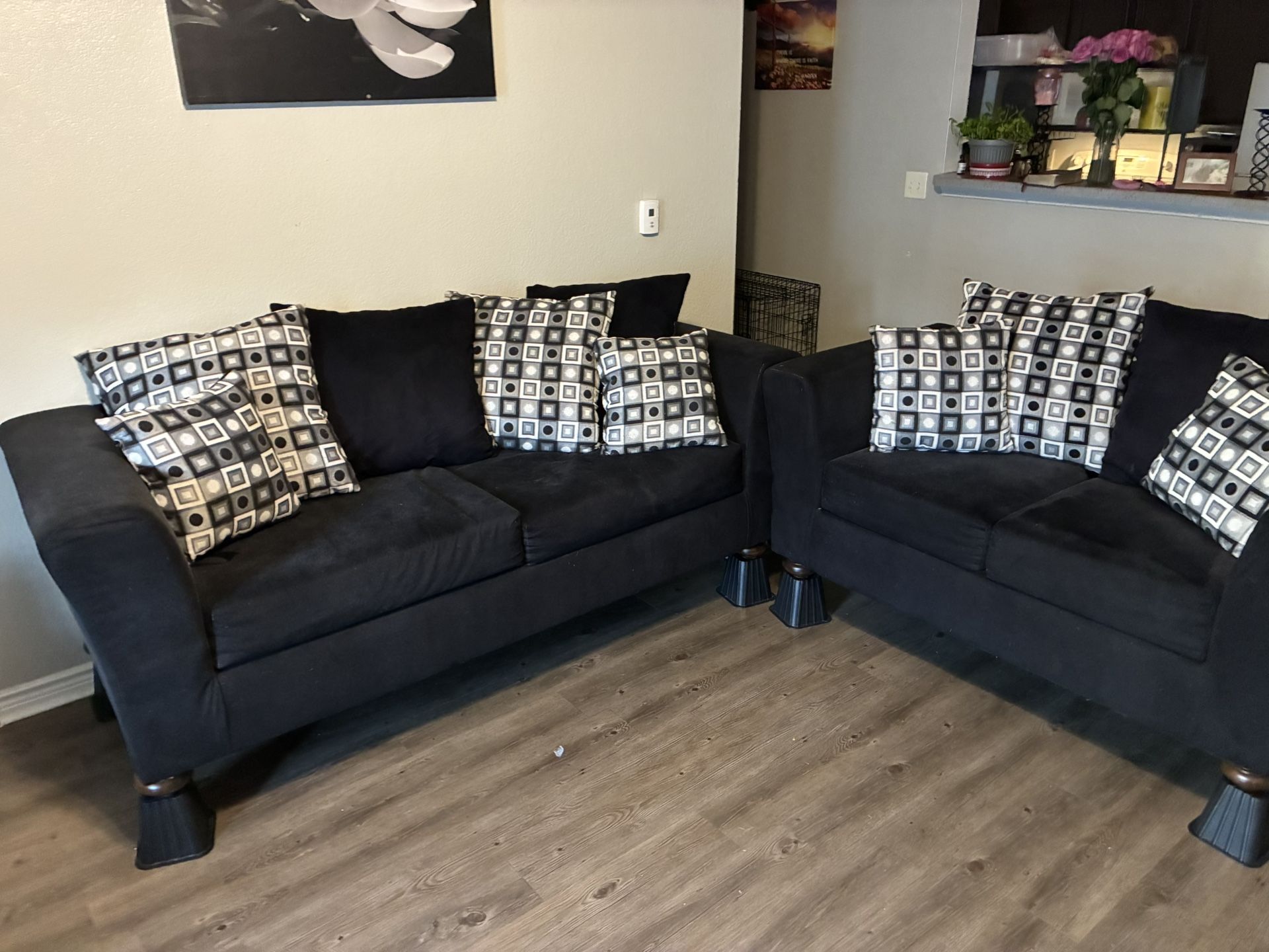 It is a beautiful couch all black. It comes with 10 pillows. I only had it for six months trying to get a new one. I’m setting the offer at 600 or best offer.