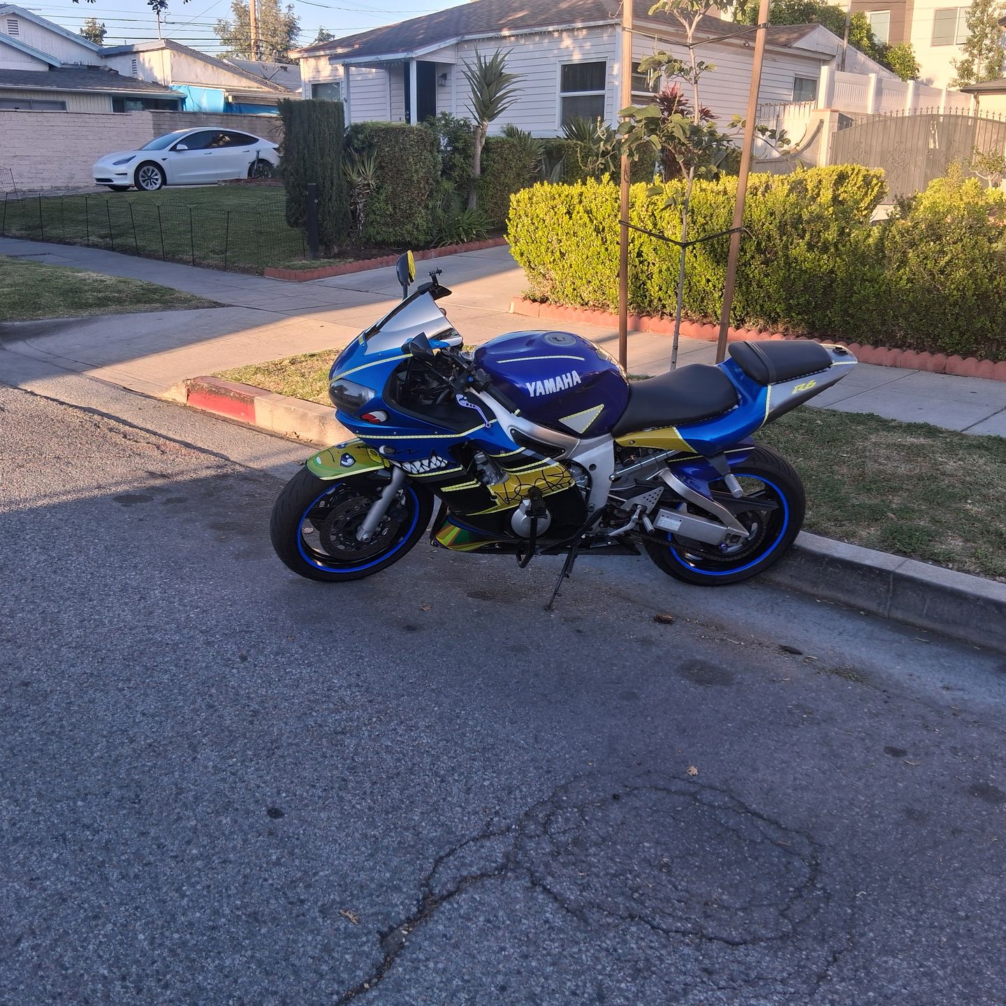 2000 Yamaha R6 clean title tags up to date fun bike comes with stunt cage and sub cage just had carburetors Serviced and cleaned install new 6 Sigma pilot jet kit for better performance synchronized also comes with SC project Slip on exhaust has under glow leds,gear indicator , voltage meter, 2 sets of extra fairings and stock exhaust asking $4500 obo.... Or trade for another 600cc and up sports bike