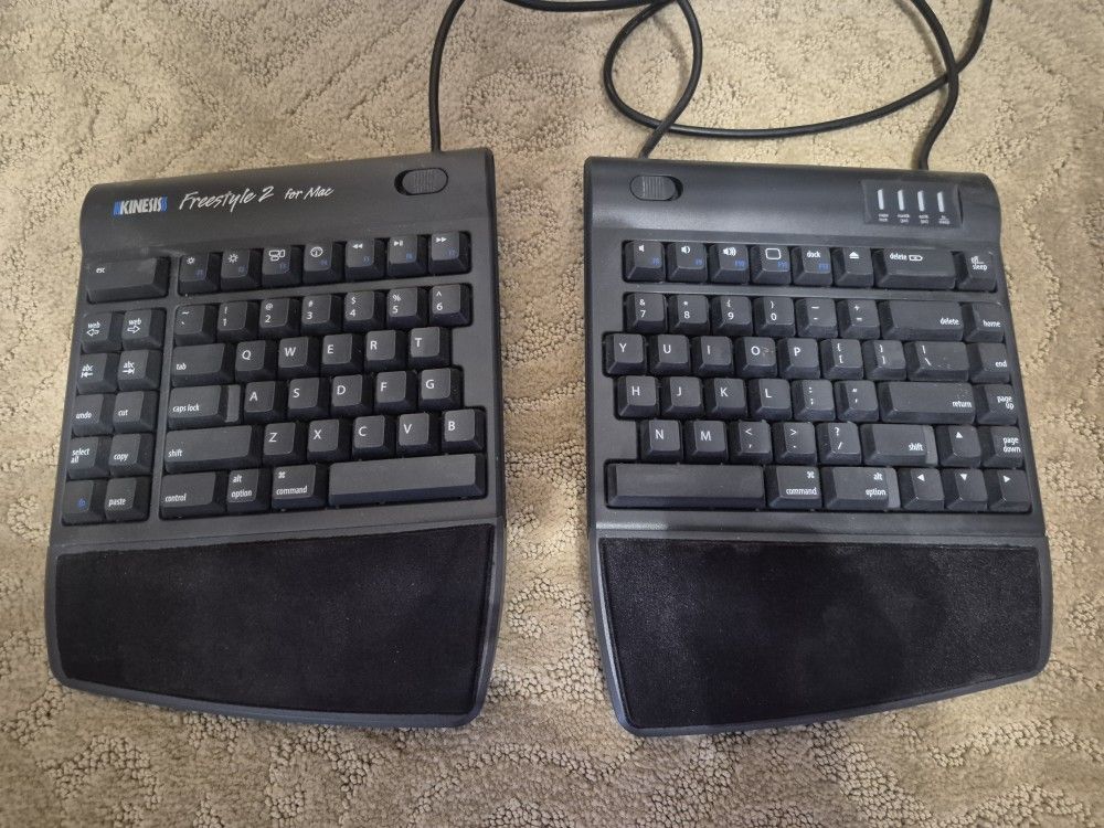 Great Condition. Works well for those who want an ergonomic keyboard that is flexible. AWARD-WINNING SPLIT DESIGN: Unlike fixed ergonomic keyboards, the Freestyle2 allows you to rotate and separate the key modules up to 20" to achieve natural hand, wrist and forearm positions for your specific body type and preferences. STANDARD MAC LAYOUT: The Freestyle2 for Mac features a standard Mac layout with Mac-specific hotkeys, shortcuts and multimedia keys to boost your productivity. No software or special drivers required. LOW-FORCE KEY SWITCHES: The Freestyle2 uses a custom membrane key switch that features a low-activation force and tactile feedback to reduce finger fatigue, impact and strain.