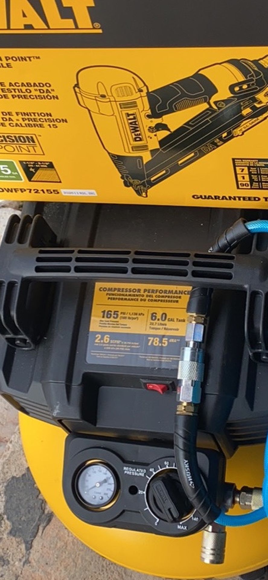 DEWALT 6 Gal. Electric Air Compressor with Pneumatic 15-Gauge DA Nailer 50 ft air hose 300 PSI