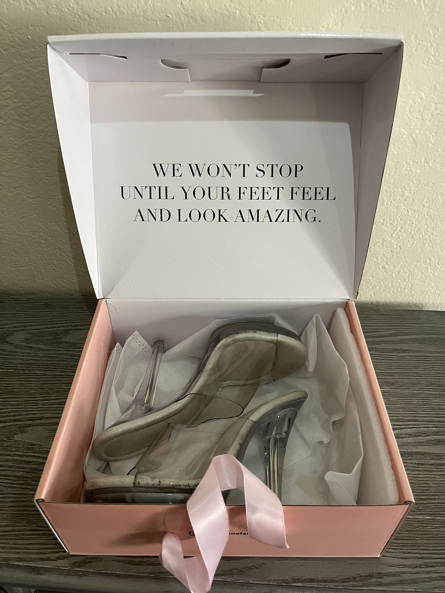The Shoe Fairy Olympian Mule Stage Competition Heels Woman’s Size 7 These shoes are in good used shape with some cosmetic wear. They were worn for 1 show and a few prep sessions prior. Comes with box as well. Woman’s size 7. Thanks for looking!
