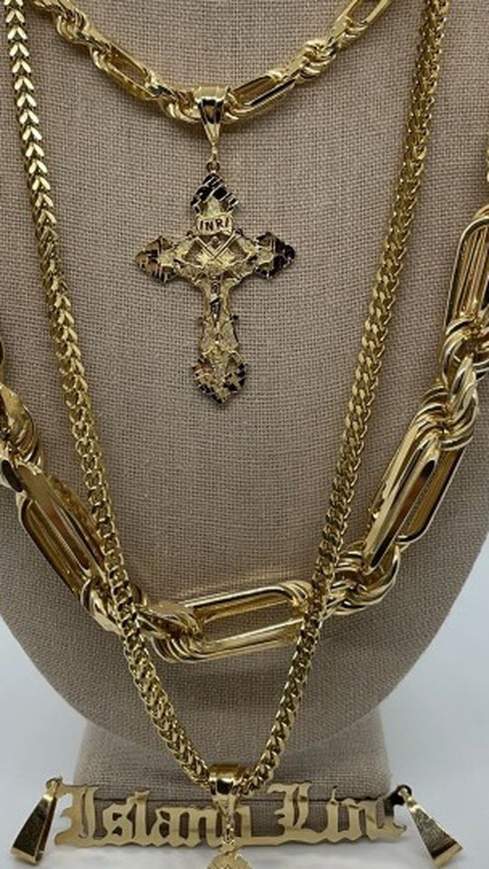 Aloha! Island Linc brings to you beautiful .925 silver chains with a beautiful 14k gold plating and overlay, I have a handful of chains to pick from at 24-26inches! 7mm, 8mm, 10mm and 14mm! This is not stainless or plating that makes your neck green, silver is still a precious metal with real gold plating, no zinc!