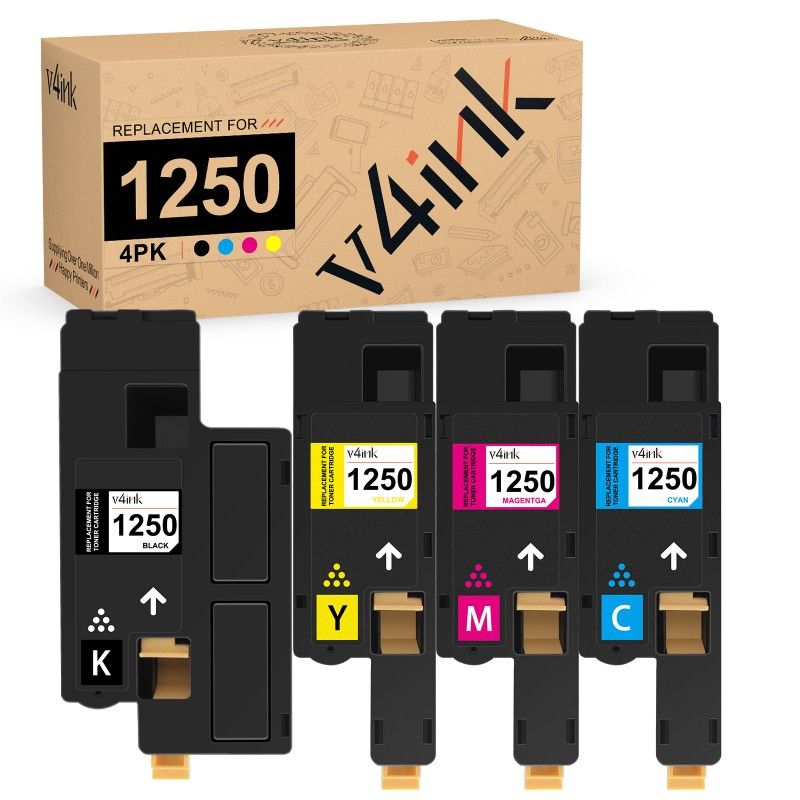 v4ink Compatible Toner Cartridge Replacement for Dell 1250 (KCMY, 4-Pack), for use in Dell 1250c Dell 1350cnw Dell 1355cn 1355cnw c1760nw c1765nf c1765nfw Printe 981 36 R M 1/1 1/12/26