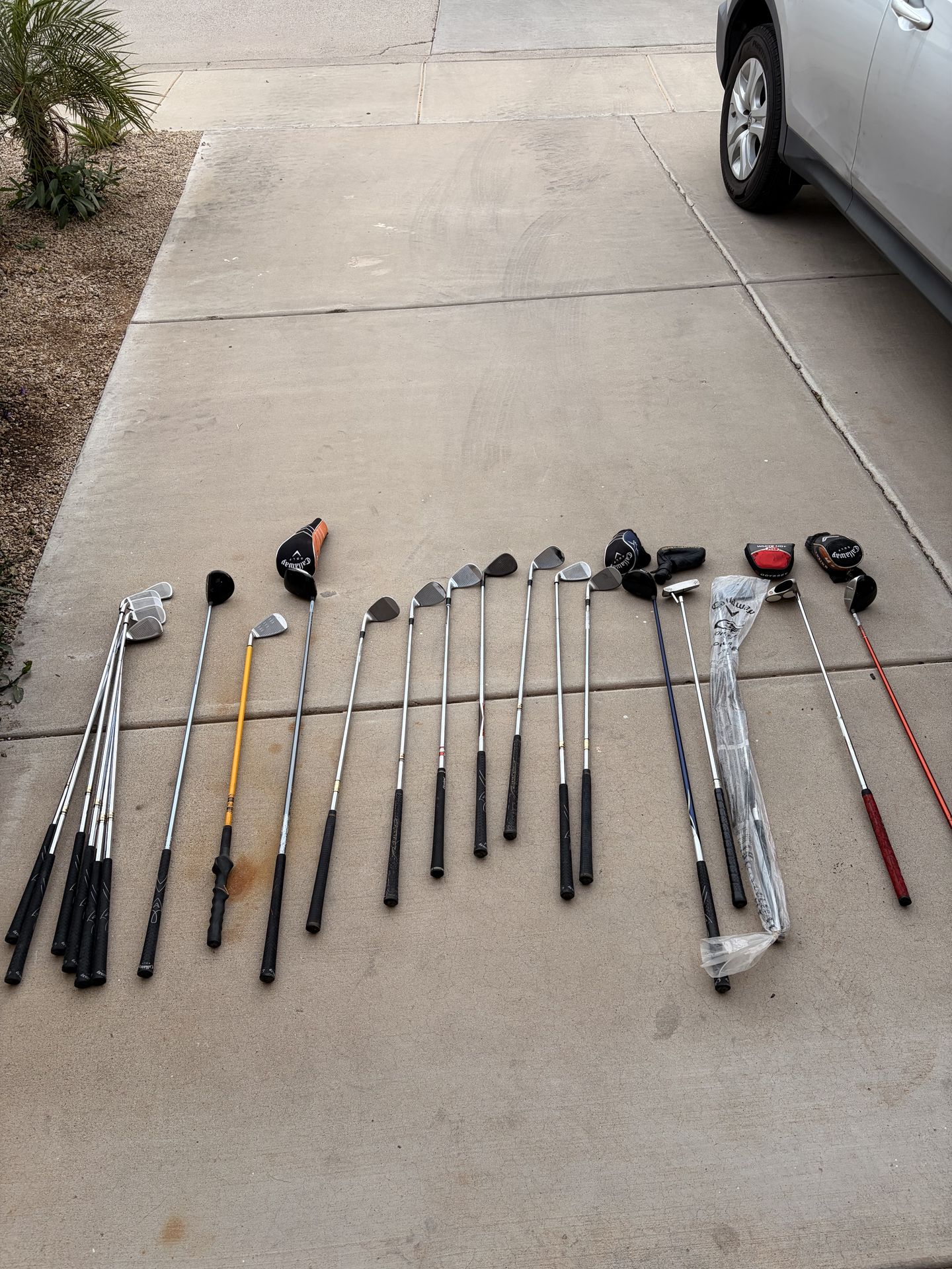 Selling all these Golf clubs. Can buy individually or all of them. callaway 3 iron big bertha $40 callaway 4 iron big bertha $40 callaway 5 iron big bertha $40 callaway 6 iron big bertha $40 callaway 7 iron big bertha $40 callaway 8 iron big bertha $40 ^full set $200 Callaway X-Series 2008 Driver 18 in $60 Momentus Golf Practice iron Swing Trainer 40 oz $50 Callaway Ft-I Squareway fairway driver 18 degree $80 RH Bobby Jone Dave Pelz 60° Lob Wedge L 60-S Graphite Wedge Flex $34 Titleist Vokey Design 260-08 60 degrees 8 degrees $80 RH Cleveland CG14 Zip Grooves Wedge 46*-14 Wedge Flex Steel Golf $40 Get Pin-Point Accuracy with this Callaway X-24 Hot Approach Wedge $30 Titleist Vokey Chrome 200 Wedge Lob LW 58° Graphite Regular Right $85 callaway 6 iron big bertha $40 Pelz Bobby Jones/Jesse Ortiz 56° SW Pelz Wedge Flex Shaft Lamkin Crossline Grip $50 Callaway X Series Fairway 3 wood 15 degree w/ Graphite Regular $60 Classic Henry-Griffitts #6 Putter $40 Callaway X24 HOT 4 Iron (Brand new not out of packaging $80 Odyssey White Hot XG 2-ball CS mallet putter 35" $50 Callaway Big Bertha Fusion 15° 3 Wood Senior A Flex 43" Right Handed $60