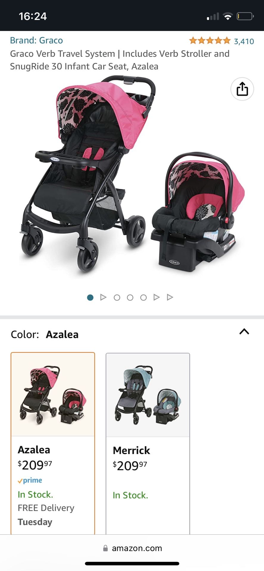 Graco Verb Travel System | Includes Verb Stroller and SnugRide 30 Infant Car Seat, Azalea