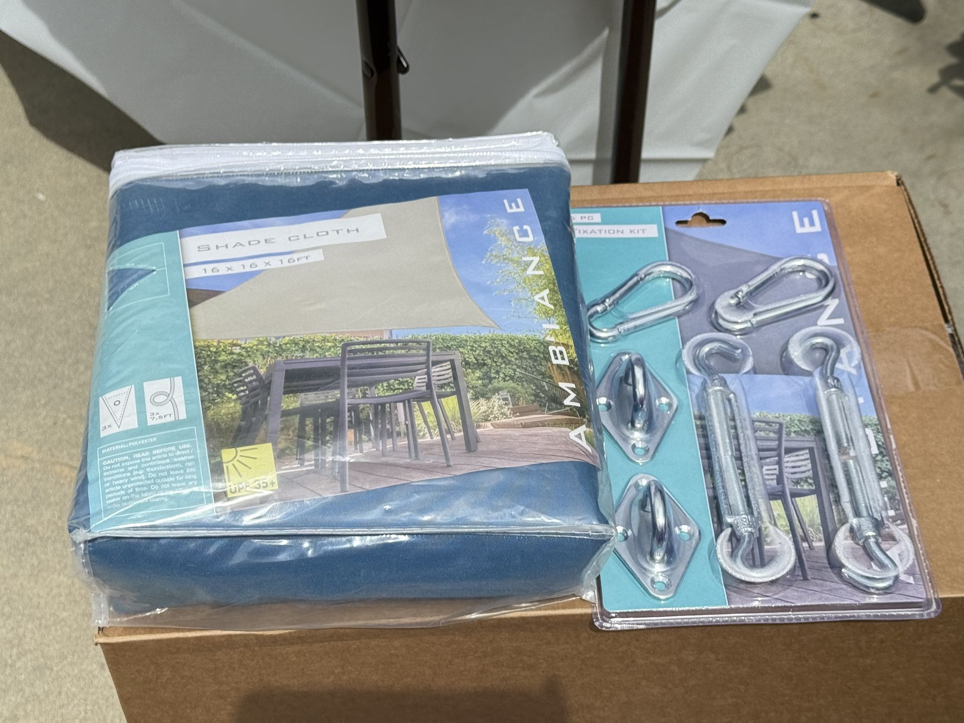 New with fixtures Great to keep shade in your patio or backyard Tarp lists for $49.99 Fixtures list for $19.99 Cash pick up only