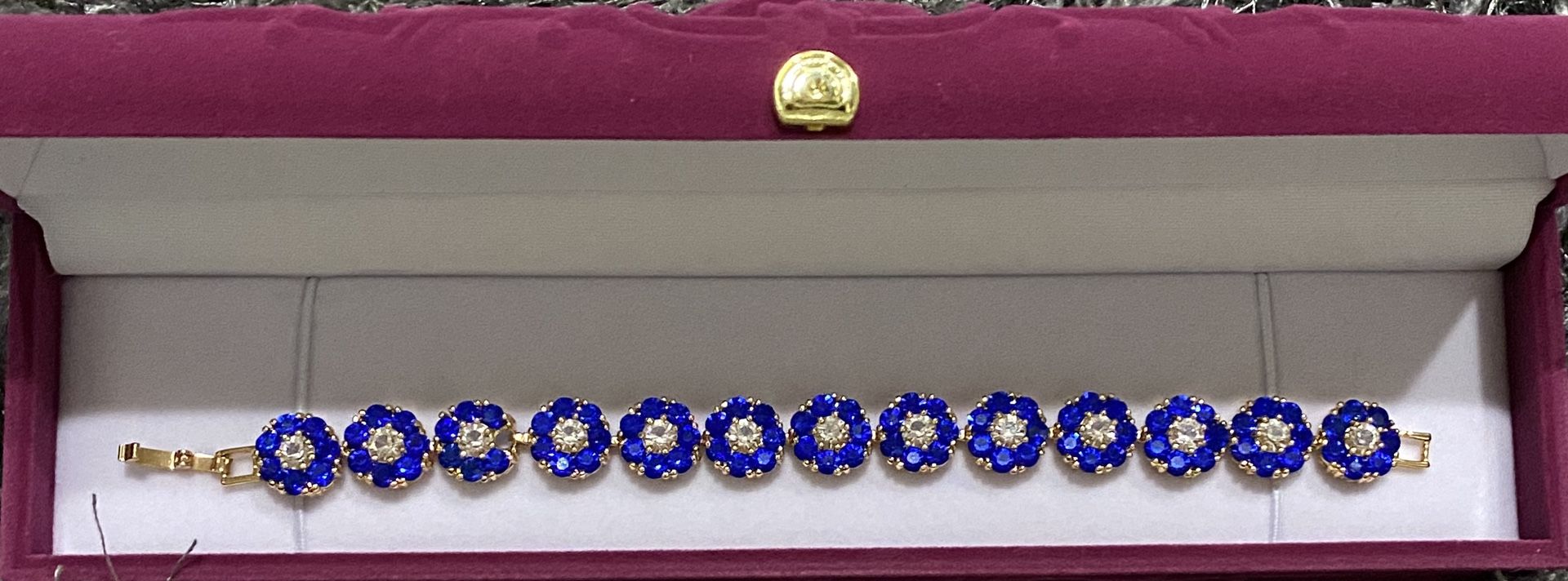 Rhinestone Round Cut Blue Emerald Tennis Statement Bracelet 18 k filled
