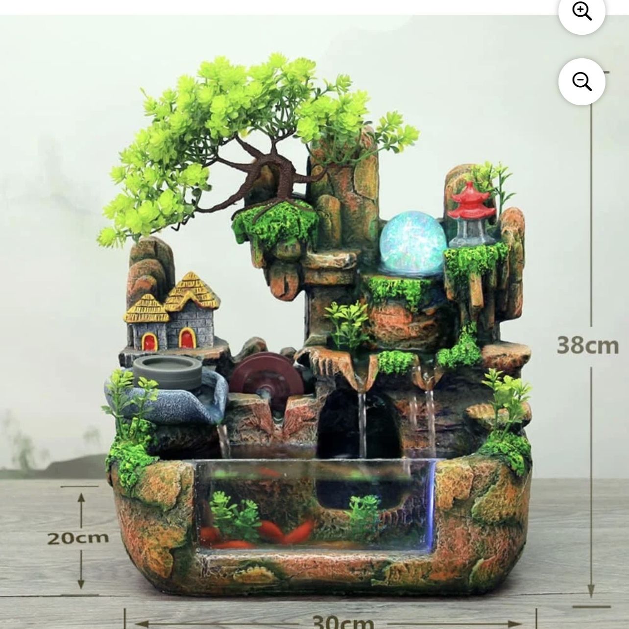 Tabletop Fountain Resin Indoor Home Decoration, 12LED Color Lights Waterfall Fountain 110V Desktop Fountain, with Atomizer, Small pots and Fish Tanks, Rockery Water Fountain for Bedroom relaxation