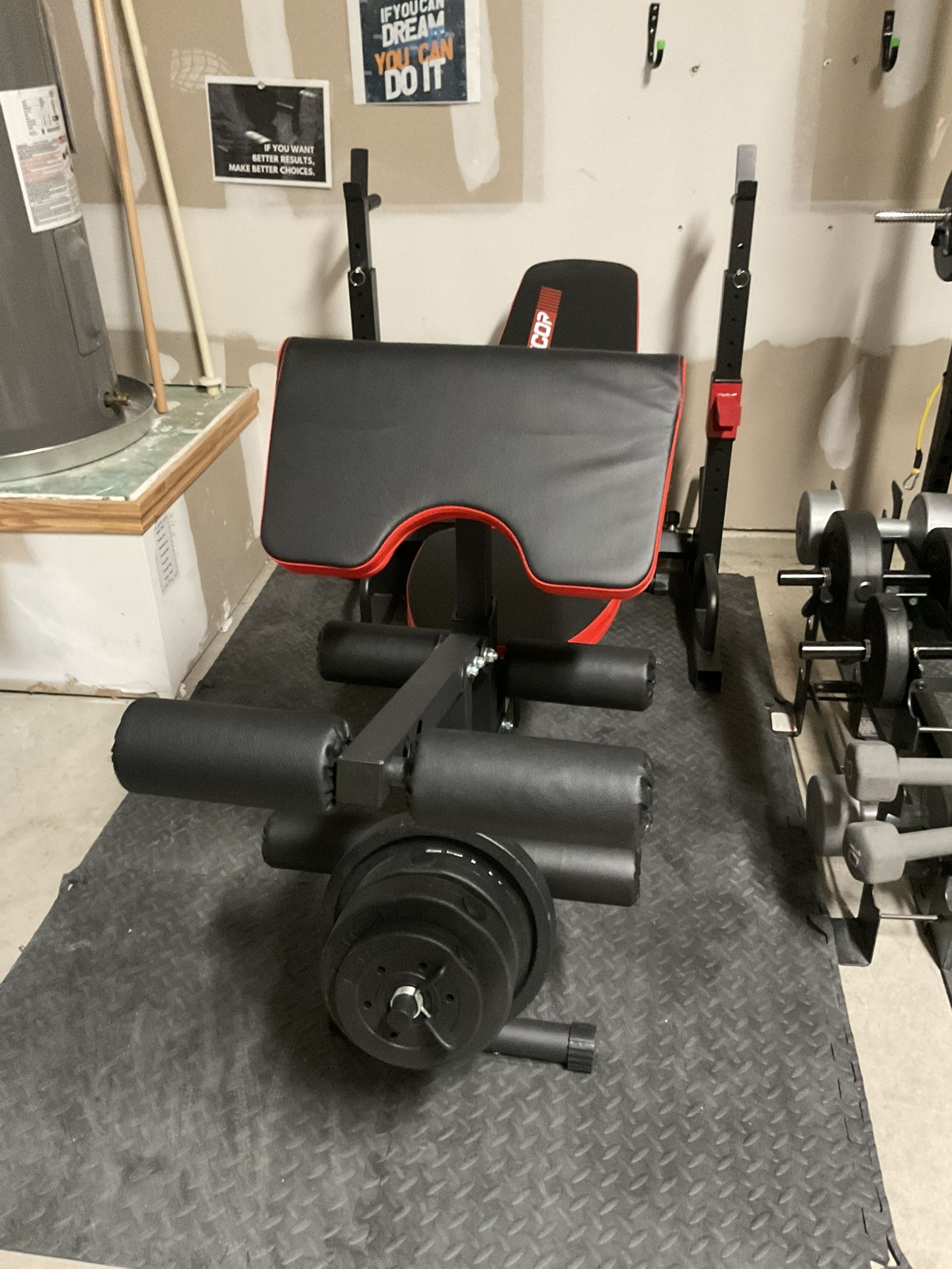 Just bought it last week and I want to get a different one. I didn’t realize it took up so much room. Rack also for sale $100 ( its Seperate ) with bench it’s $200 with Free Weight Bench Size: 57 x 19 x 47 in Back Cushion Size: 28 x 12 x 2 in Seat Cushion Size: 18 x 12 x 2 in Curl Pad Size: 18 x 11 in • $200 For Bench with wheels and Leg Extension, Squat Rack, Dumbbells •