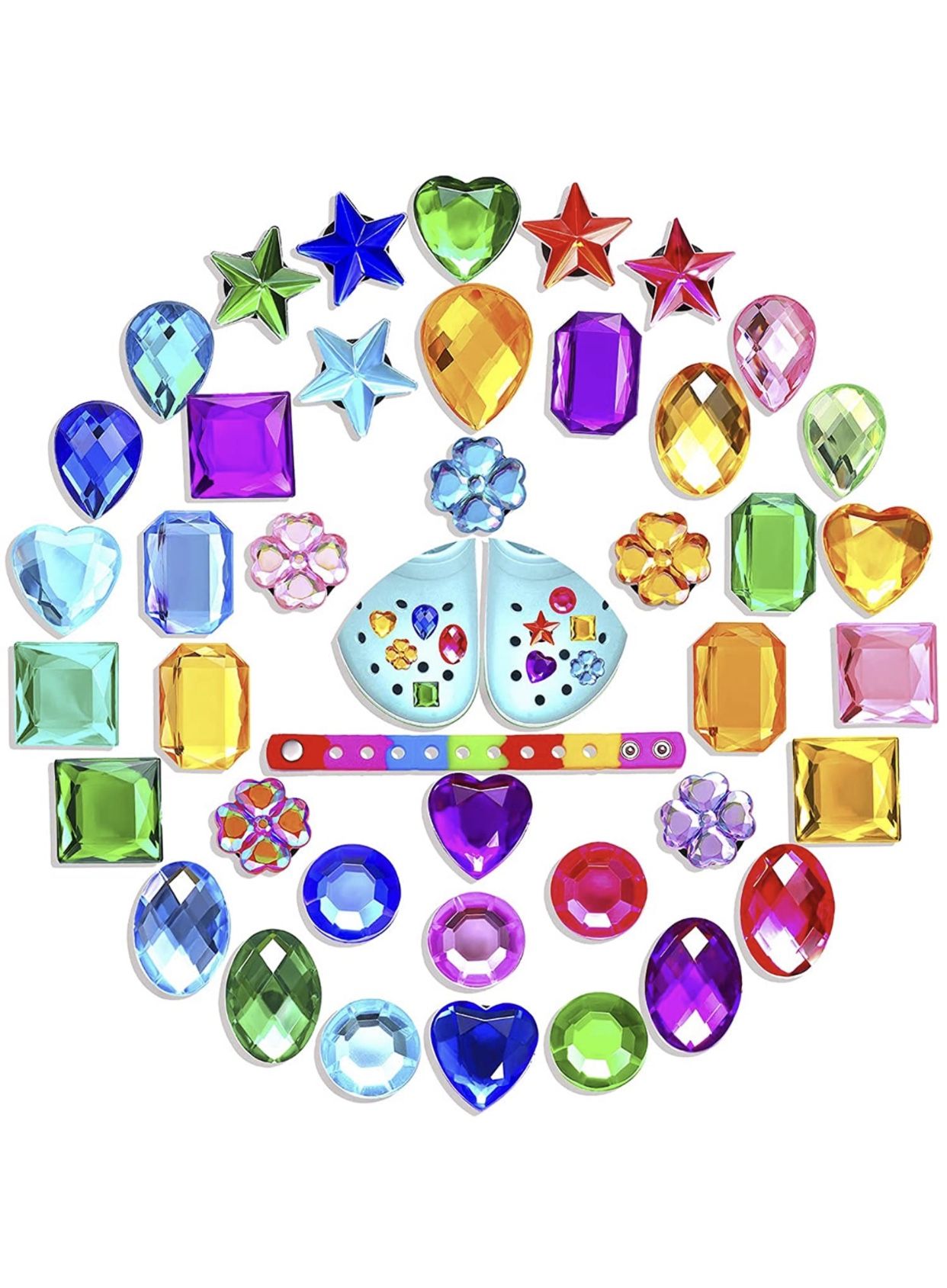 40PCS Rhinestone Shoe Charms for Shoes Decoration Wristband Bracelet Colorful Round Flower Heart Crystal Stone PVC Charms Party Favors Birthday Gifts