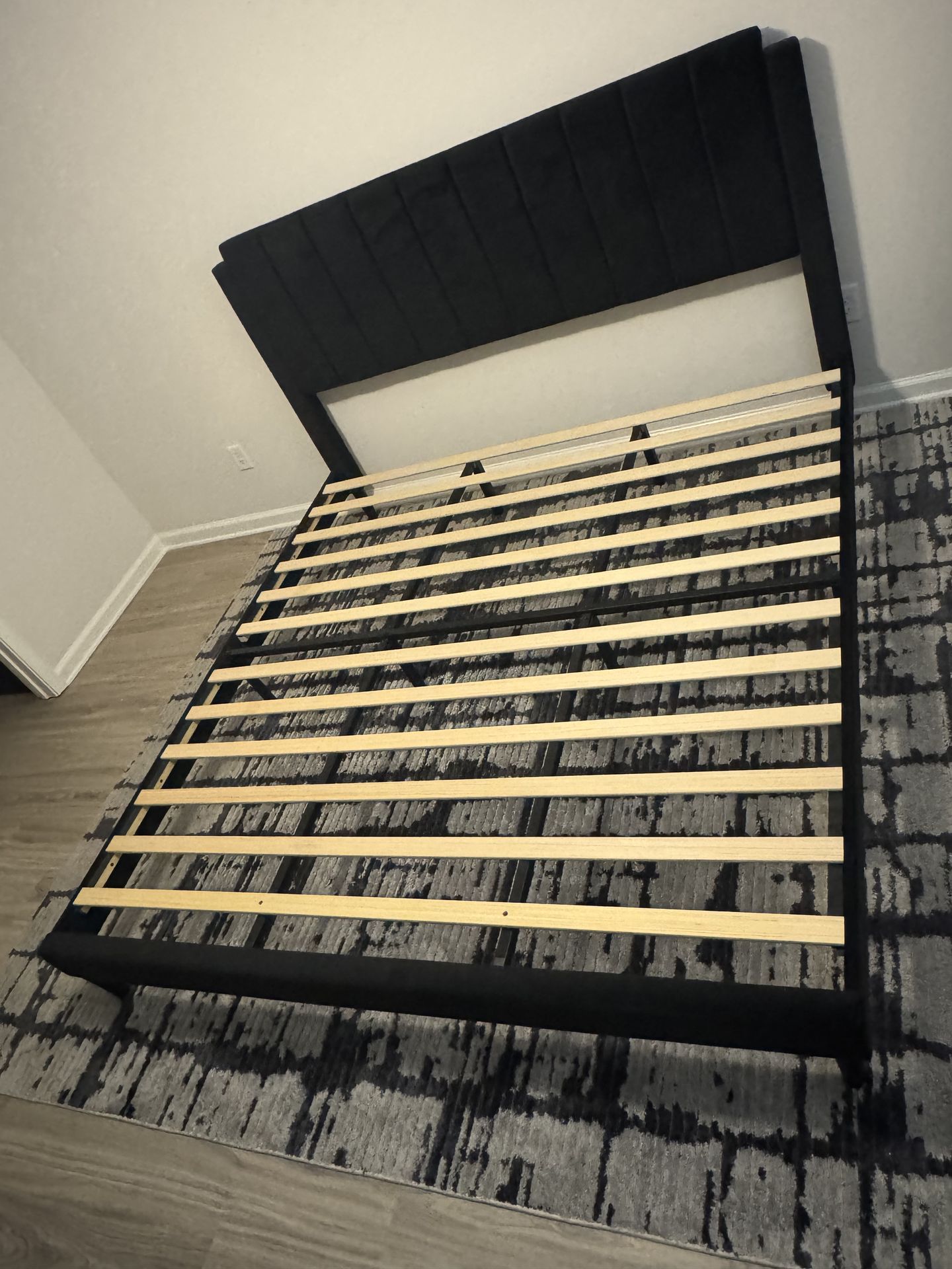 *KING SIZE* Stauton Upholstered Platform Bed with Velvet and Striped Headboard
