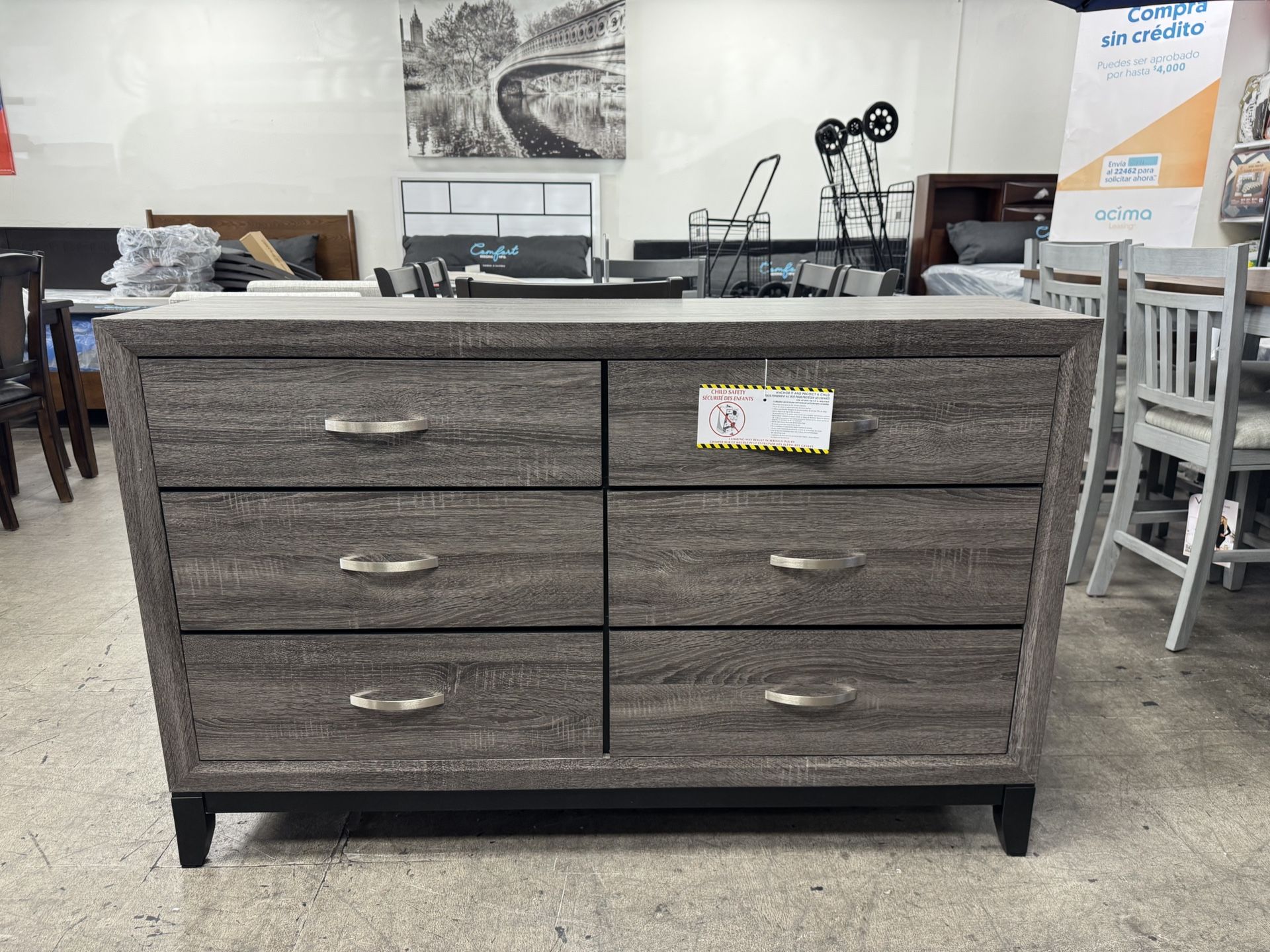 BRAND NEW Gray Dresser, 6 Drawers