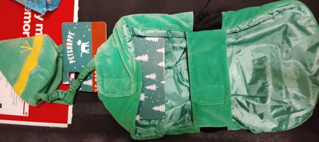 It is an elf costume for a dog between 15 and 19 lb brand new never used.