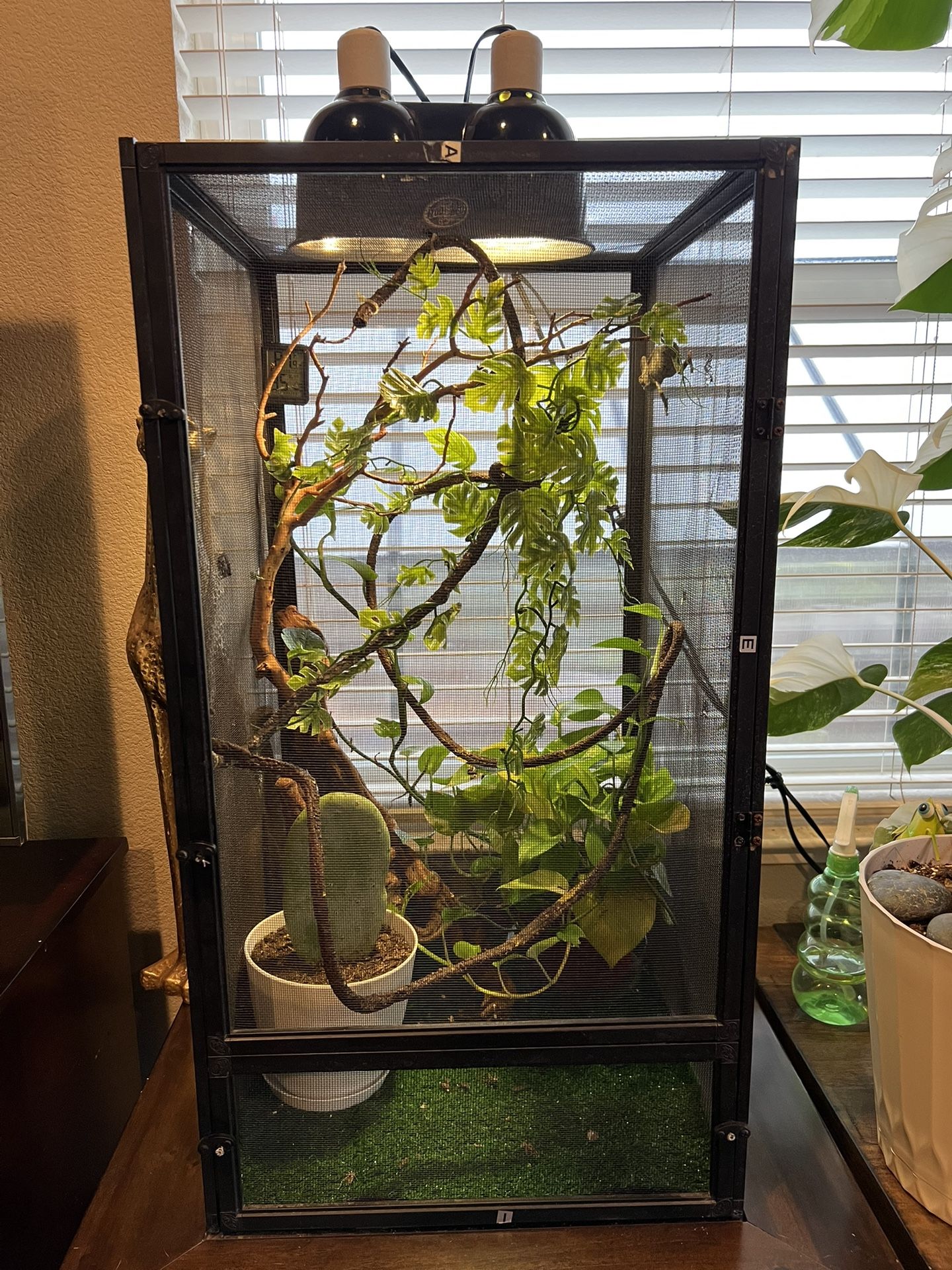 Everything in PHOTOS Included Enclosure 18x18x36 Heat Lamp & UV Lamp Temperature Gage 6 Month old Veil Live plants and accessories