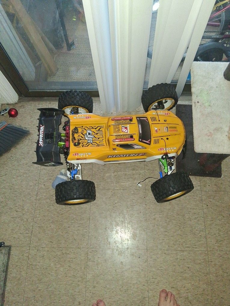All the parts except the body are all custom. I dont know the top speed but I do know it is fast.