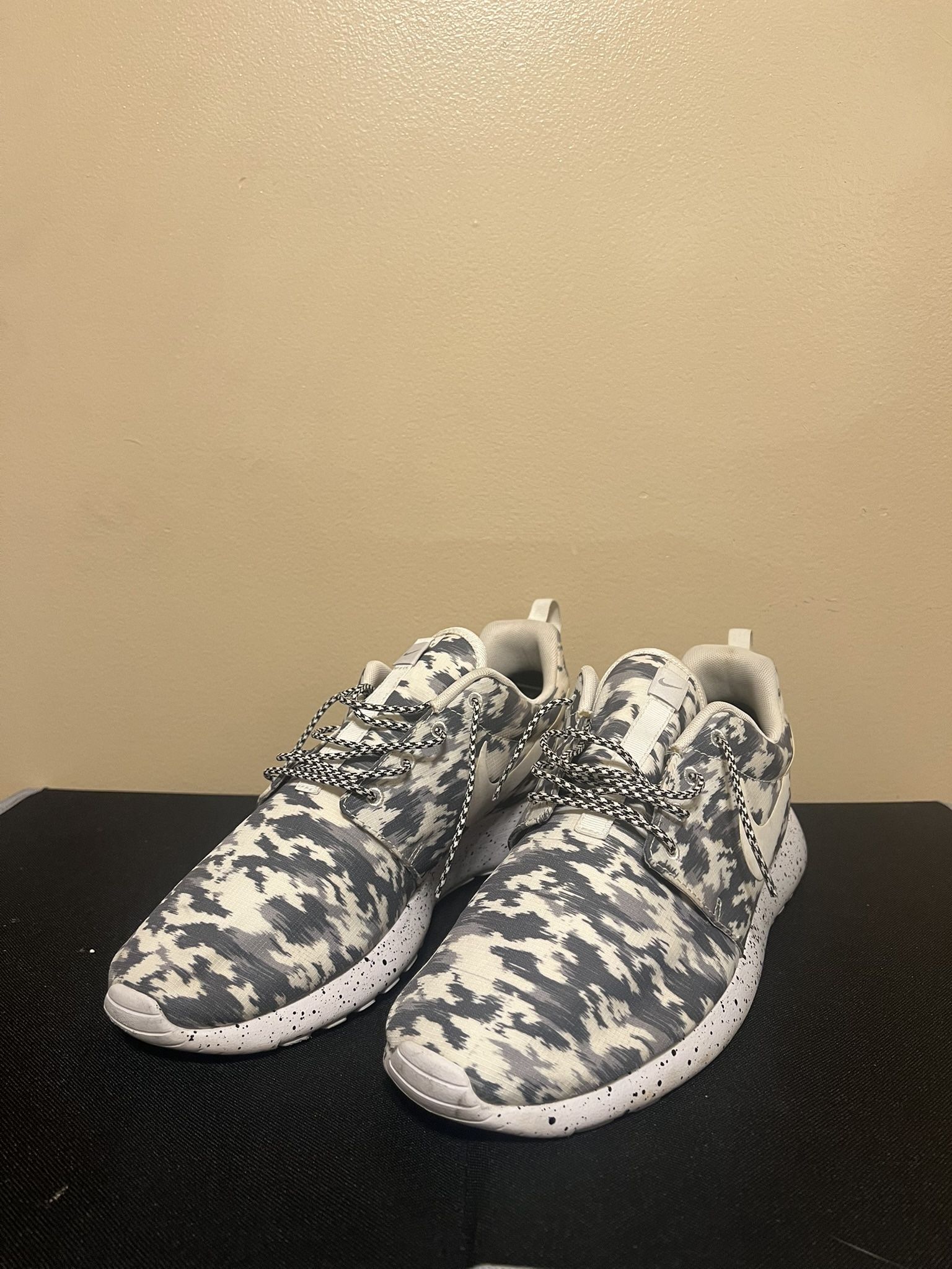 Nike Roshe One - Custom - “Snow Camo Print” Size 11 Men’s Good condition Only worn a few times Comes with adjustable shoe tree Box included Looking for local pick up but will ship if needed. Price is negotiable if it’s right.
