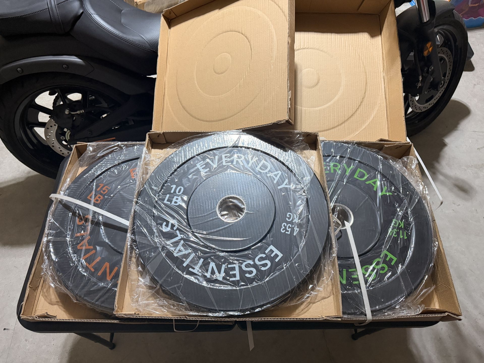 *Price Firm* New Never Used Comes in unopened box 2 x 25lb plates 2 x 15lb plates 2 x 10lb plates Also available on other listing - 50lbs of 2x25 plates for $45 or 100lbs 4x25 for $80 Available in Forney and Mesquite. Can meet in surrounding cities.