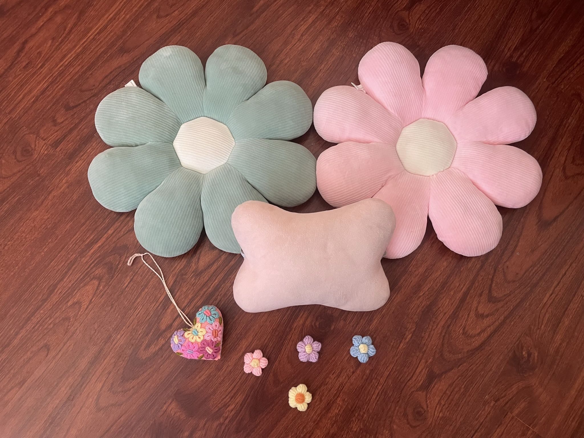 Flower pillows -neck pillow - small crochet flowers - mirror decor Good condition , they need to be cleaned up ! Pick up only 67th Ave and McDowell
