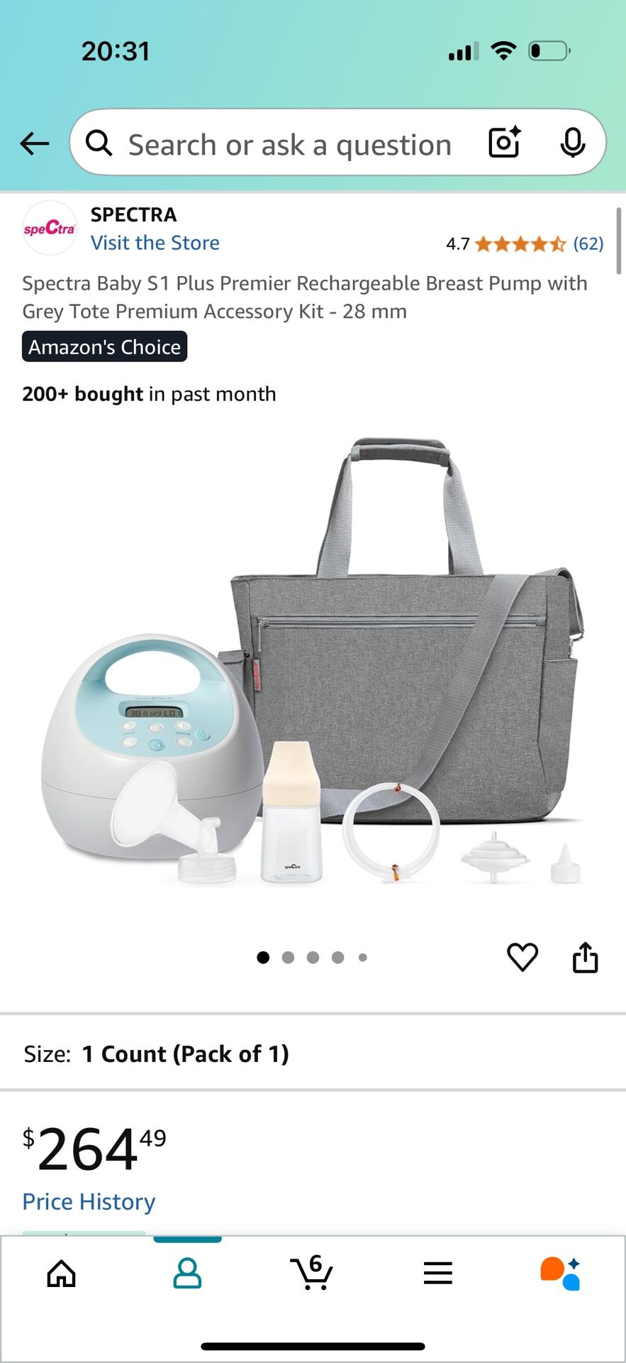 Spectra Baby S1 Plus Premier Rechargeable Breast Pump with Grey Tote Premium Accessory Kit - 28 mm