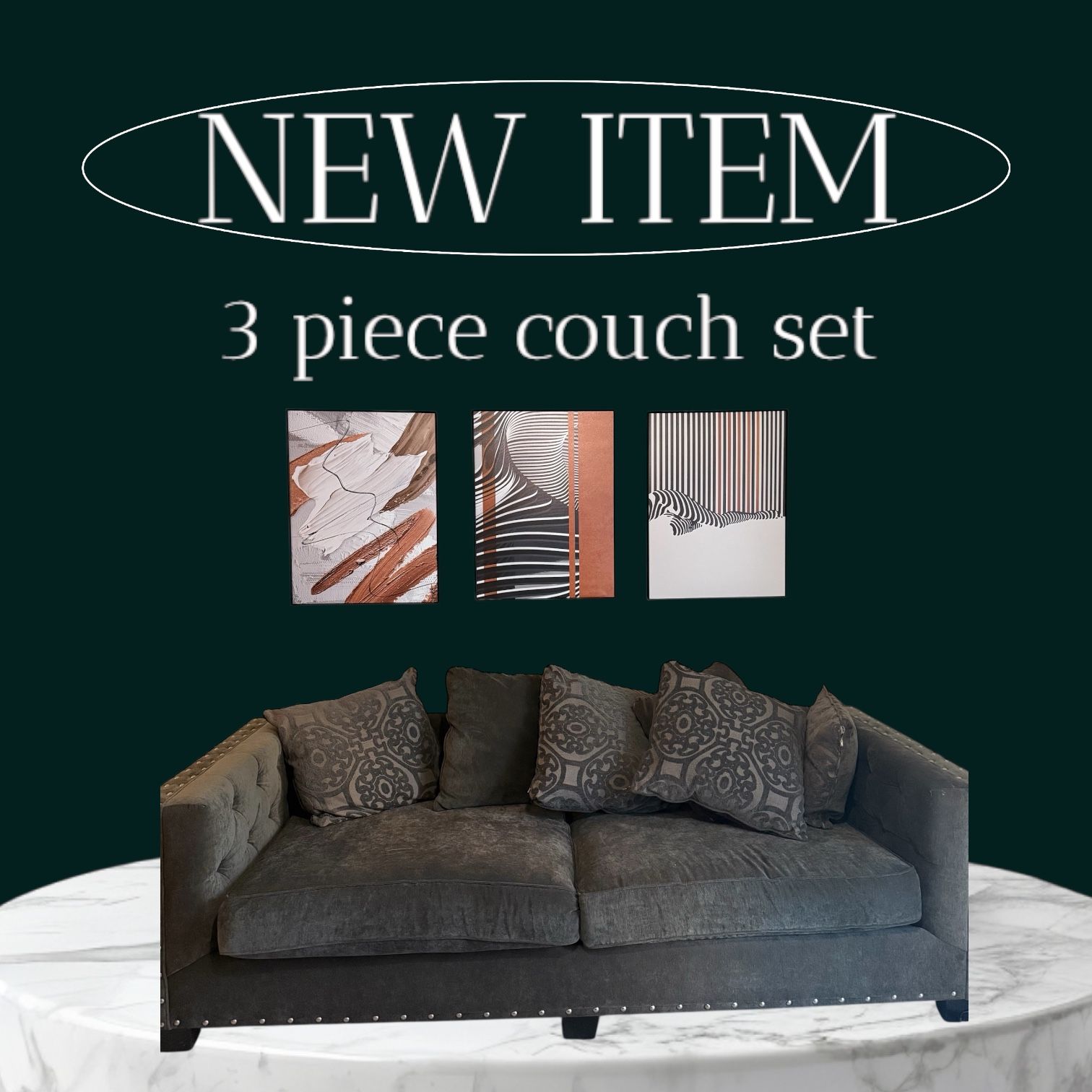 Beautiful 3-piece Sofia Vergara couch set in good used condition. Set includes: • Large sofa • Medium sofa • Loveseat Couches are comfortable, sturdy, and well maintained with normal light wear from use. Perfect for a spacious living room or entertainment area. No major damage. Selling as a complete set.